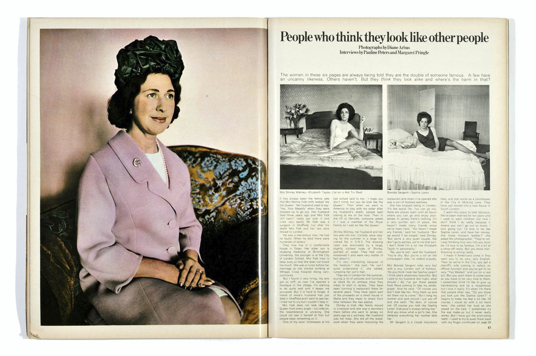 Diane Arbus (American, 1923-1971) Magazine spread featuring Mexican Dwarf in his hotel room, N.Y.C., 1970 and Identical twins, Roselle, N.J., 1967