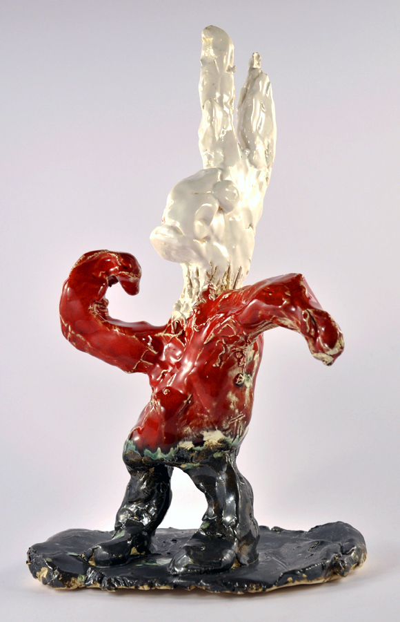 Malcolm Sturrock (Australian, b. 1944) Not titled (rabbit in red jumper) 2010 ceramic 29 x 19 x 12cm Image courtesy the artist and Arts Project Australia