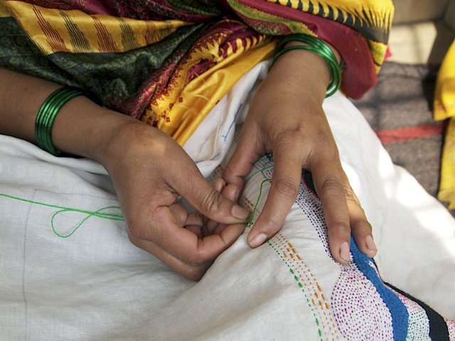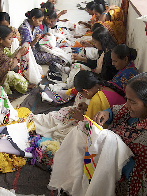 Of course, Loder has paid these women, a means of recognising and honouring their work, a means of bringing them into view, at the margins of economy, welfare and community. Indeed, she has taken their portraits and documented them at work, and it’s a startling contrast. Our middle-class stories, anxieties and interests ending up in the careful hands of these women in colourful saris, sitting and working together, our (largely) passing concerns darned into the muslin cloth in their laps, our own saturated photographic hues indistinguishable from the bright chaos of folded cloth and pleated skirts, with their nimble fingers tracing our desires and cares in bright lurid threads.” (Stuart Koops, 2012)