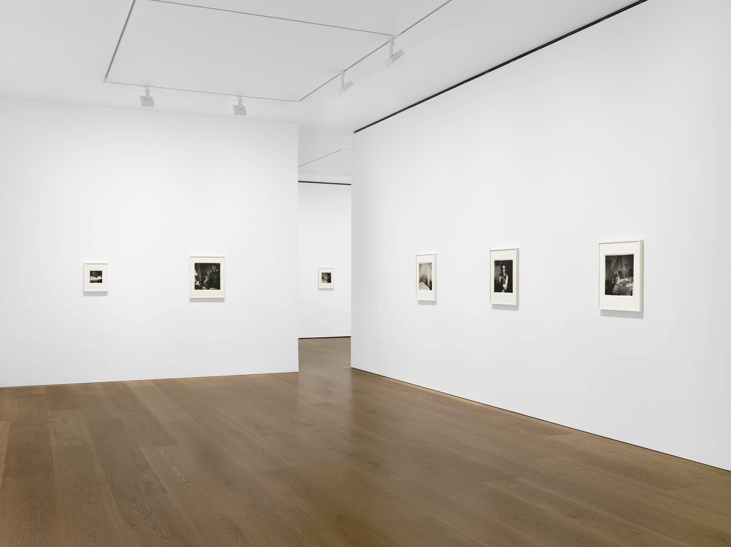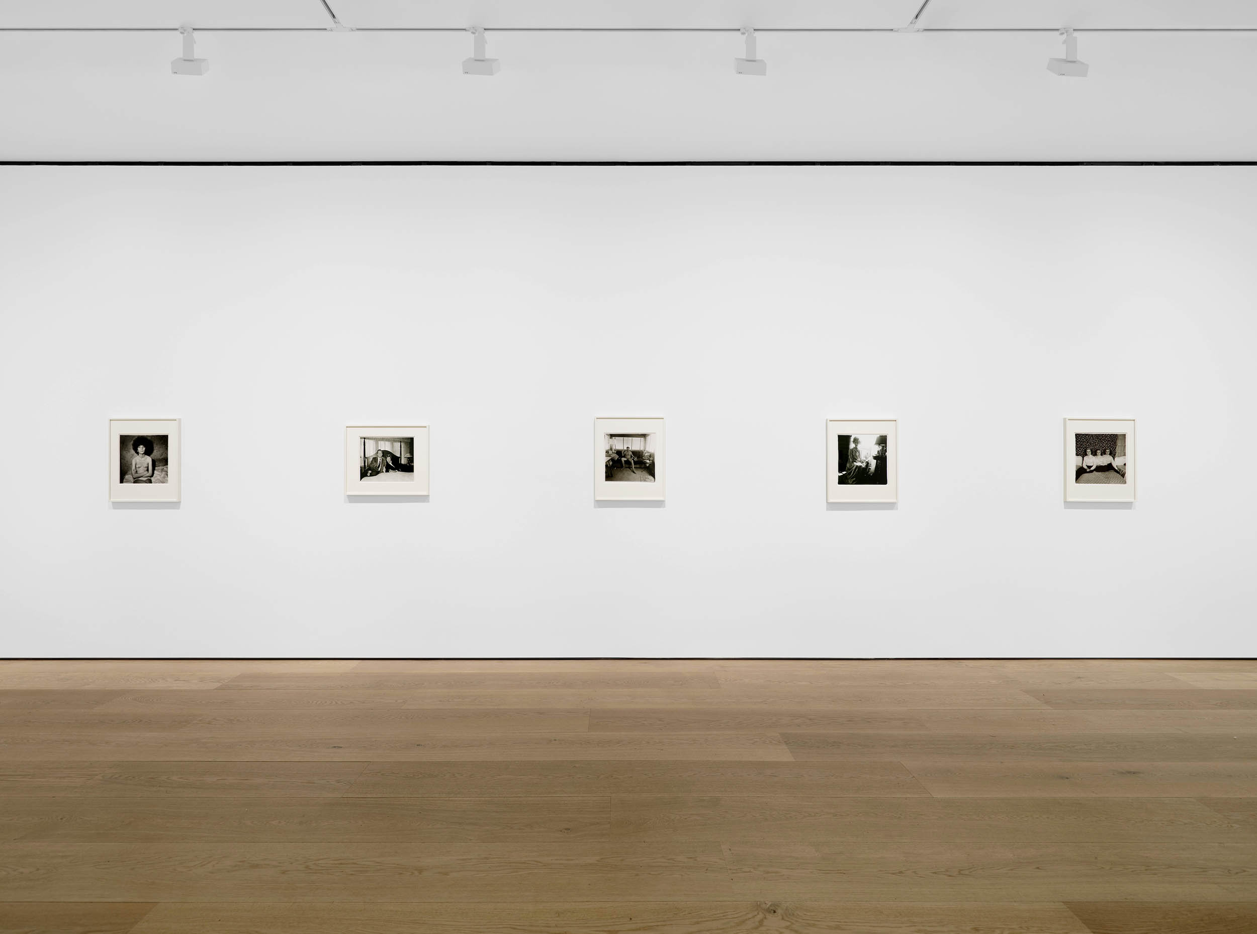 Installation view of the exhibition Diane Arbus: Sanctum Sanctorum at David Zwirner, London showing in the centre distance, Arbus’ Mexican dwarf in his hotel room, N.Y.C. 1970; at second right, Lucas Samaras, N.Y.C. 1966; and at right, Bishop on her bed, Santa Barbara, Cal., 1964