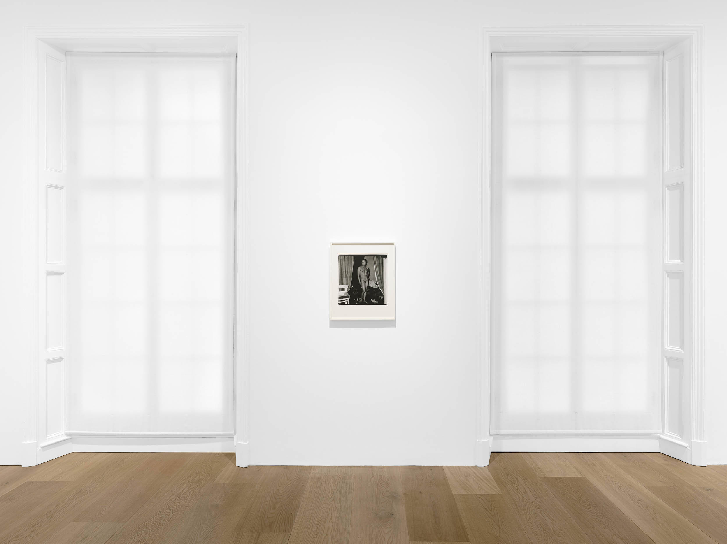 Installation view of the exhibition Diane Arbus: Sanctum Sanctorum at David Zwirner, London showing Arbus’ photograph A naked man being a woman, N.Y.C. 1968