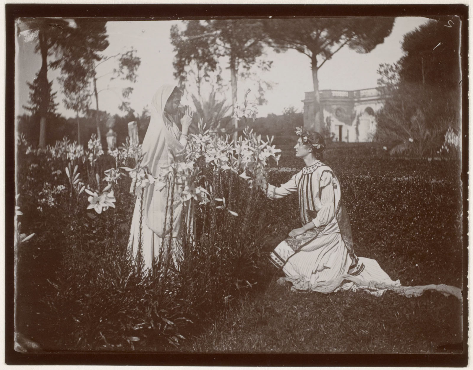 On July 21, 1888, Gabrielle “went out to buy things necessary for photography.” This marked the beginning of an obsessive production of two thousand photographs, mostly taken at the Villa Medici where, as First Lady of a prestigious cultural institution, she organised receptions and received visiting high society. Gabrielle quickly escaped the constraints of her duties: she acquired a camera, took lessons from Cesare Vasari, a Roman professional, and, together with fellow resident Alexis Axilette, set up a darkroom to develop her negatives, print, and retouch her photographs.