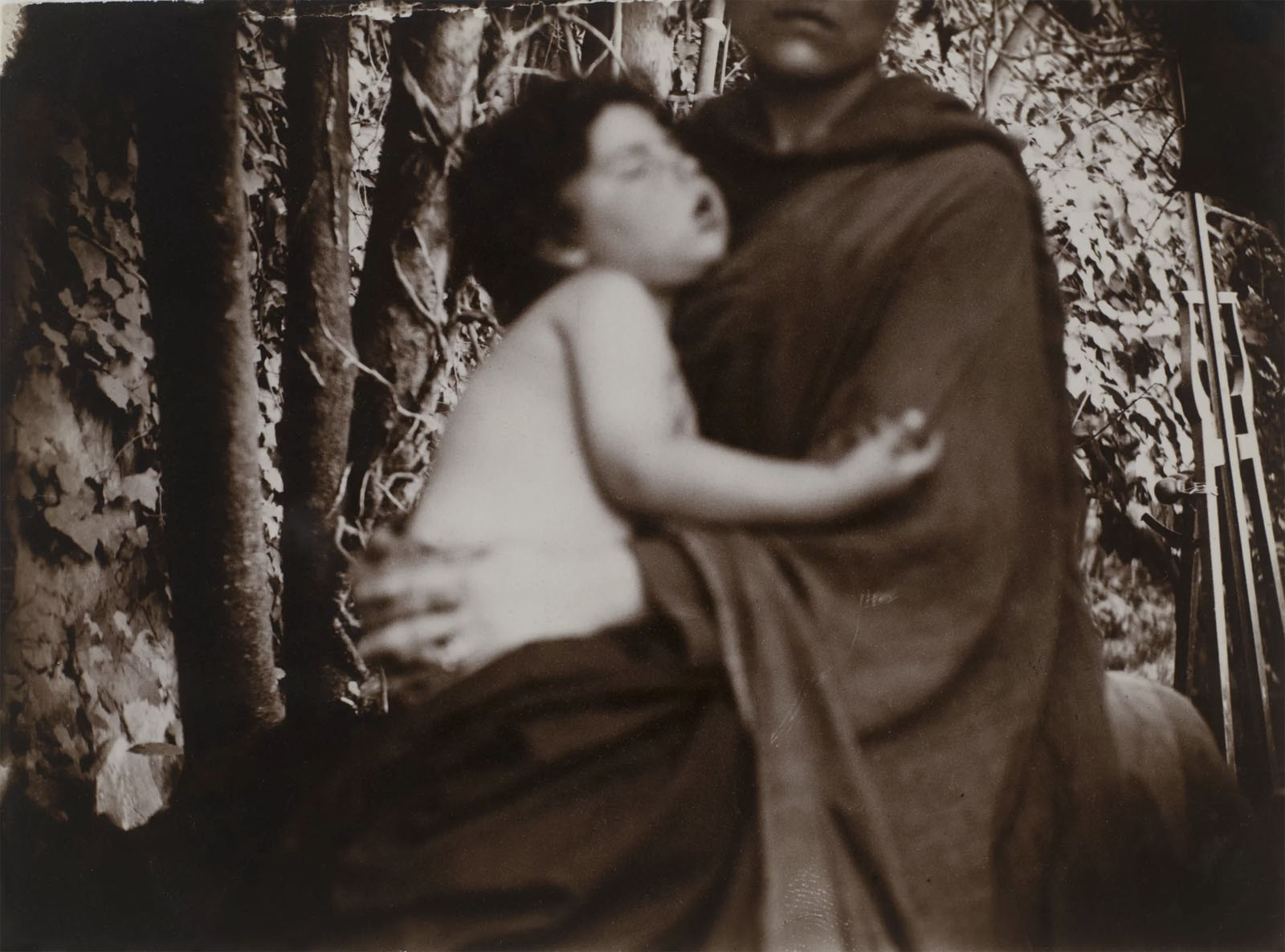 Photographs such as the allegorical Peppino Scossa endormi dans les bras de sa mère, 11 août 1888 (Peppino Scossa asleep in his mother’s arms, August 11, 1888) (1888, above) and La duchesse de Mondragone et l’une de ses bellessoeurs posent pour une Annonciation, juin 1890 (The Duchess of Mondragone and one of her sisters-in-law pose for an Annunciation, June 1890) (1890, below) are redolent of the photographer Julia Margaret Cameron (British born India, 1815-1879).