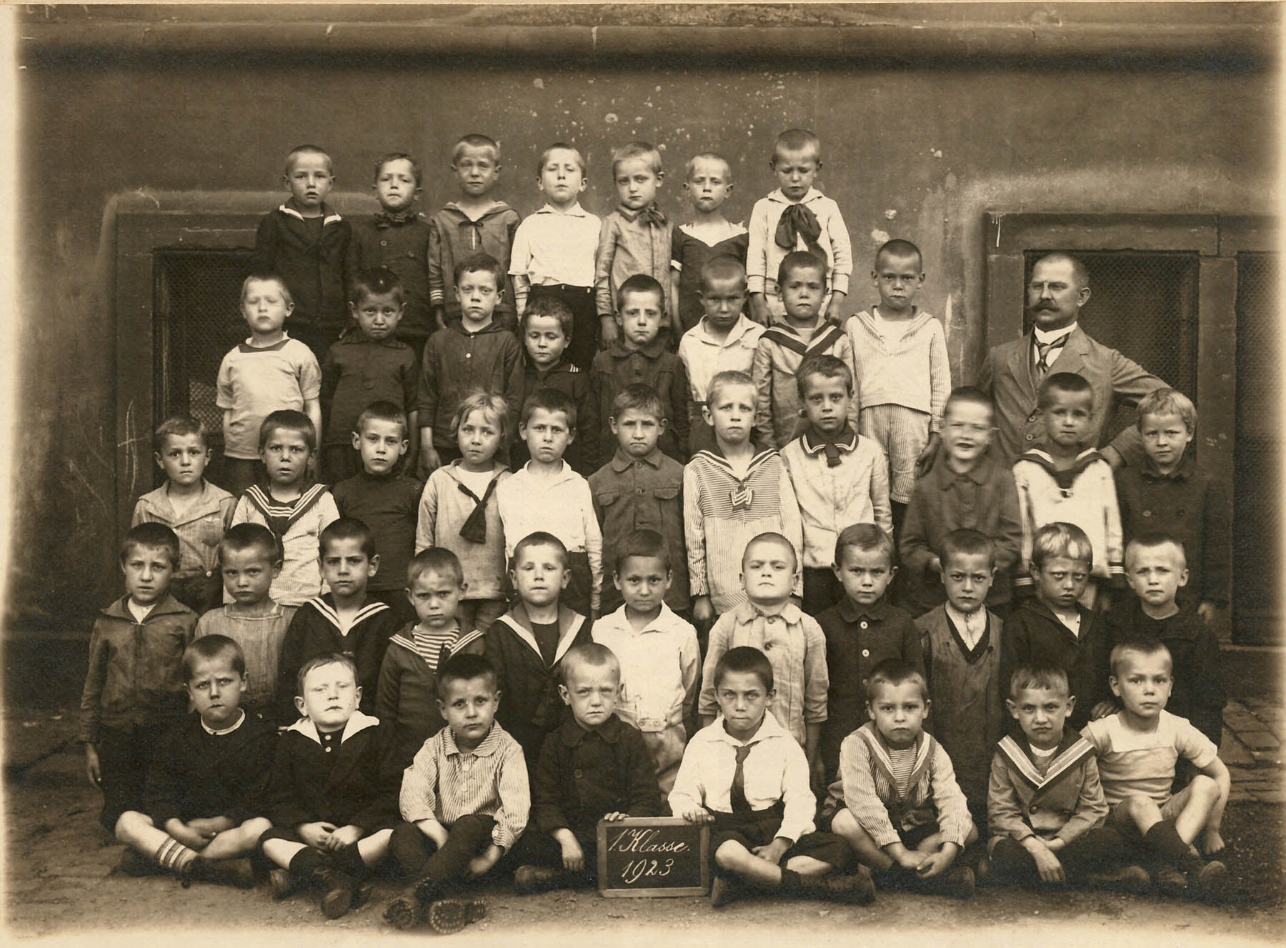 A comparative study of school photographs in the USA showed that the corners of the mouth have been rising steadily in portraits since 1900. A comparison of two class photos from the Museum Ludwig archive, taken forty years apart, confirms this: whereas in 1923 the expressions were still serious, in 1963 there are smiling faces. However, the US study also showed that girls and women smile significantly more than boys and men. “Photography faces,” whether they smile or not, are culturally formed faces.