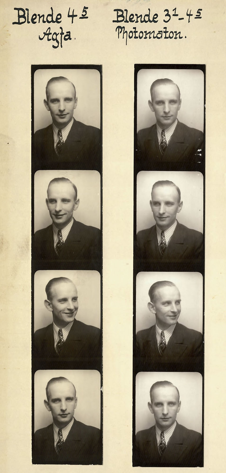 The introduction of photo booths in the 1920s meant that portraits could be taken cheaply and without being observed by photographers, which encouraged people to experiment, as we can see in this test strip taken in a Cologne department store.