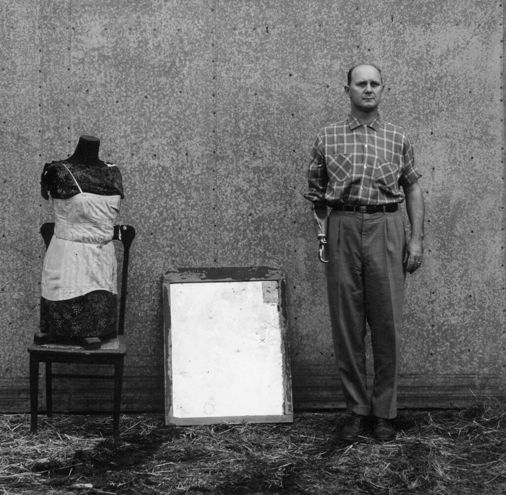 He is best known for his staged scenes that suggest absurd fantasies, played out in the dilapidated houses and banal suburban environs of Lexington. Often featuring his family as actors and including props such as masks and dolls, the scenes reveal his search for inner truths among the ordinary. Though he wasn’t unknown in his lifetime – he exhibited, lectured and showed his work regularly throughout the 1960s – he worked both geographically and conceptually outside of the mainstream of photographic modernism, and it wasn’t until after his death that his reputation began to grow steadily.