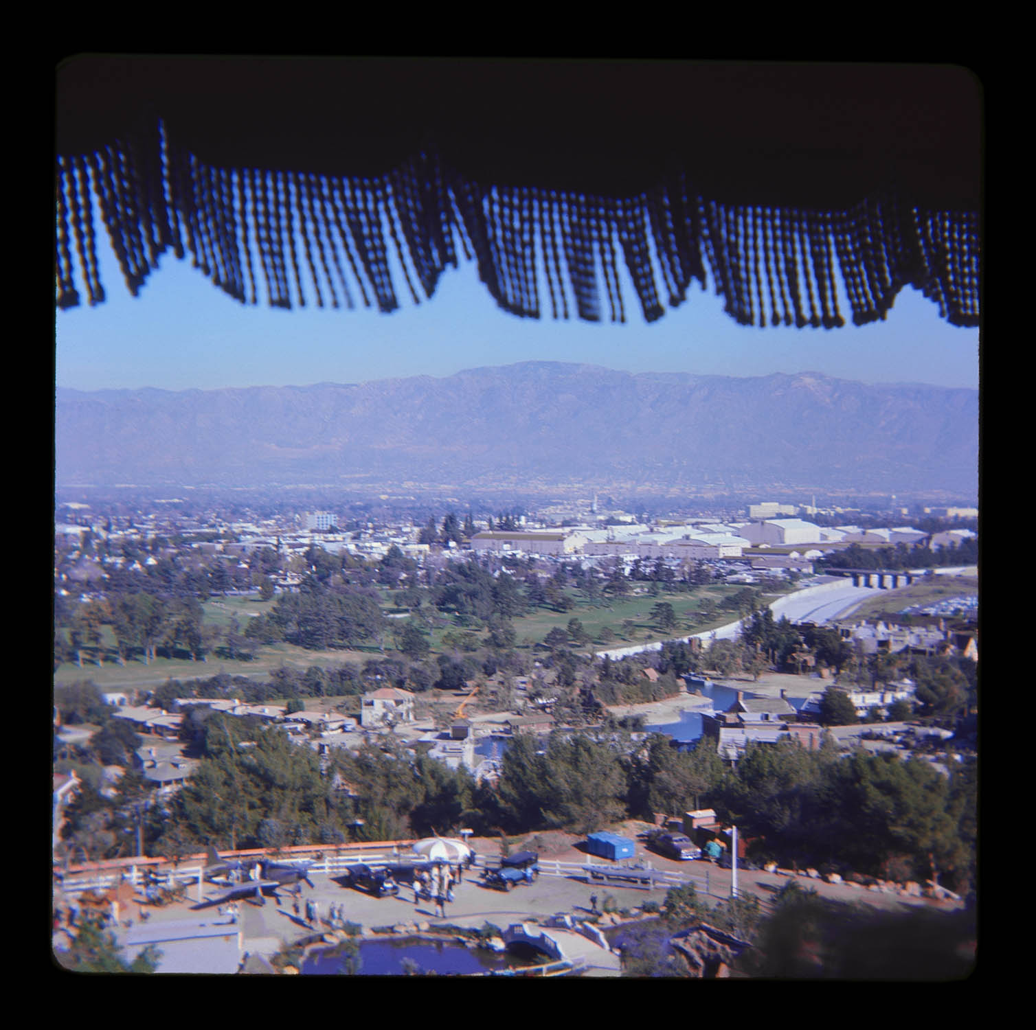 Unknown photographer (Australian) General view over Universal Studios including my plane, Tammy’s houseboat, Warner Brothers in background, California 1960s Ektachrome medium format transparency scanned