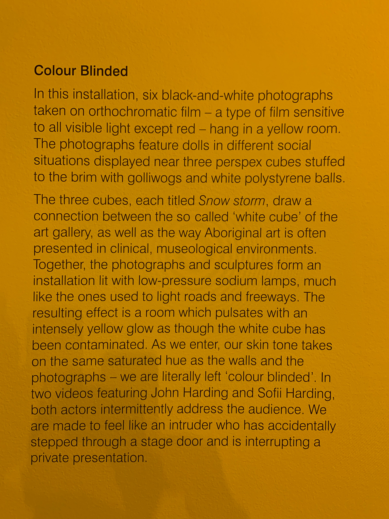 Personally, I would have liked to have seen a greater range of voices expressing themselves in this exhibition. It struck me that the inclusion of so much (historical) white art and so much contemporary Aboriginal art formed a rather limited framework in which to examine “who are you”. Rather, I would have liked a more balanced representation through art of the many voices that contribute to the formation of evolving Australian identities, which ultimately could lead to a greater insight into the construction of our own self-portrait. That is the truly important aspect of any navel gazing exercise.