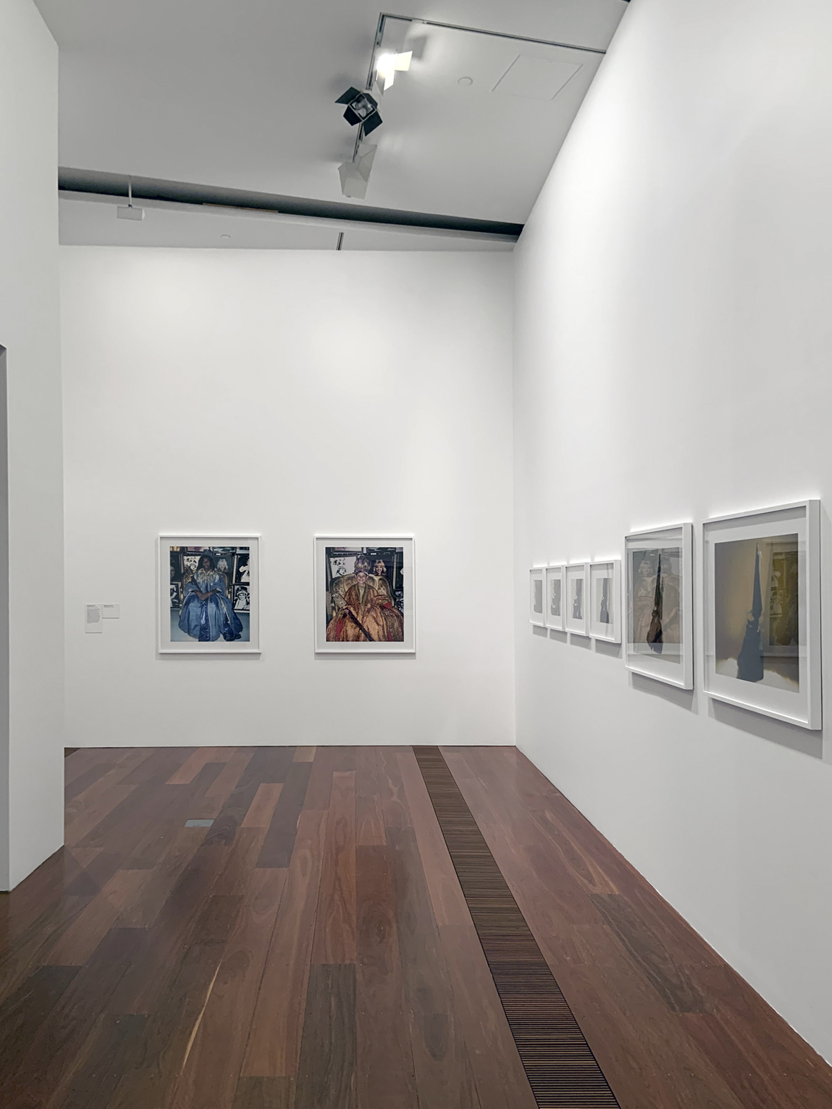 Installation view of the exhibition WHO ARE YOU: Australian Portraiture at NGV Australia, Federation Square, Melbourne showing photographs from Brenda L. Croft’s A man bout town series (2004, below)