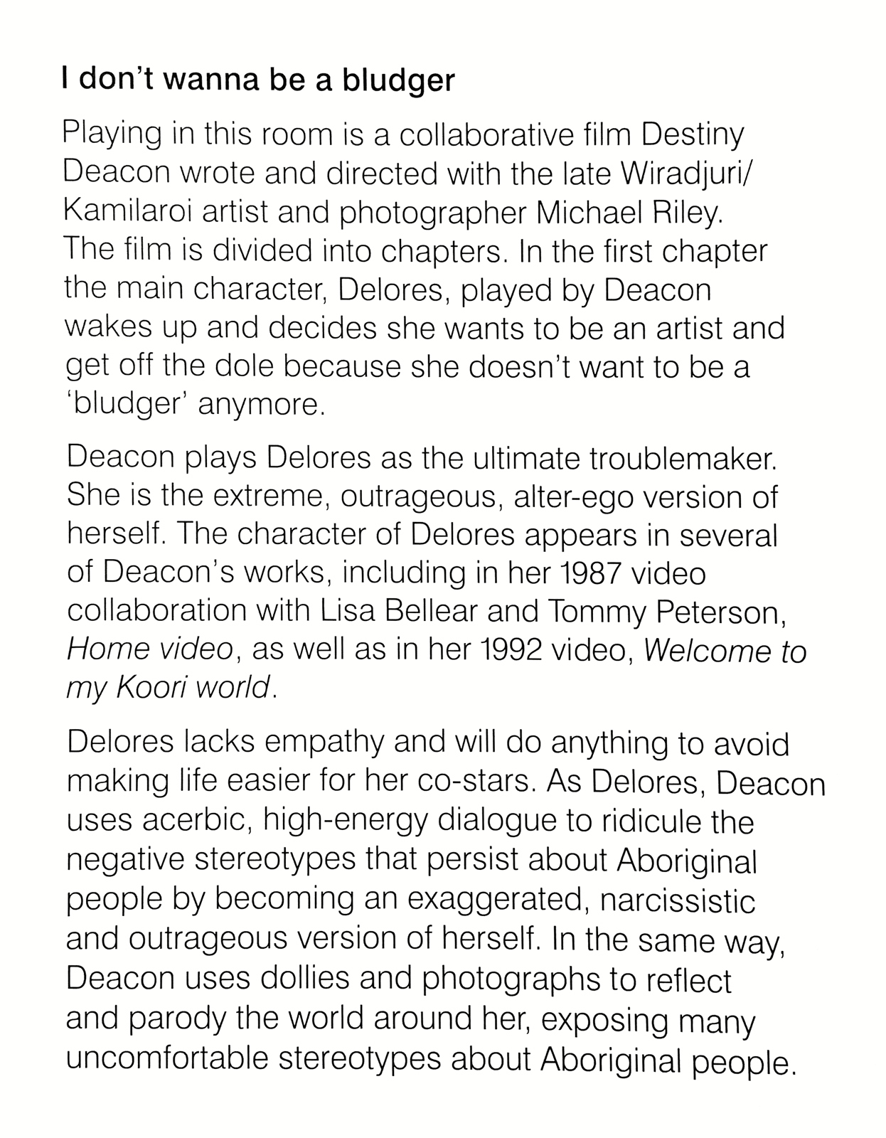 One of Australia’s most acclaimed contemporary artists, Tracey Moffatt grew up in Brisbane and moved to Sydney after studying at the Queensland College of Art. She worked in photography, video and filmmaking, helped establish the Boomalli Aboriginal Artists Cooperative, and was part of the group of creatives engaged in reshaping the representation of First Nations peoples in the visual and performing arts. When Moffatt photographed him in 1985, Yolngu man David Gulpilil AM (1953-2021) had already appeared in several major film and television productions, including Walkabout (1971), Storm Boy (1976), The Last Wave (1977) and The Timeless Land (1980). This portrait of him was shown in NADOC ’86, which Wiradjuri / Kamilaroi artist Michael Riley described as the first exhibition where Aboriginal artists ‘were dictating … how they wanted to show images of their own people.’ Moffatt’s image of Gulpilil lazing at Bondi Beach might seem benignly tongue-in-cheek, but in fact makes an incisive reference to colonialism and the dispossession on which Australia’s supposedly egalitarian, laid-back lifestyle is based.