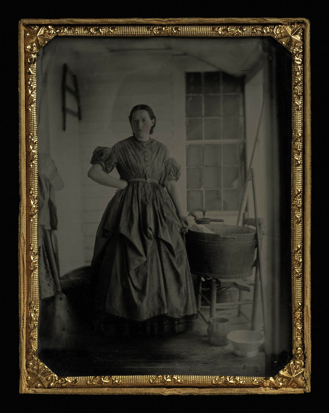 Unknown Maker (American) Laundress with Washtub 1860s Ambrotype with applied colour Case: 4 1/8 x 3 1/4 in. (4.2 x 3.2cm) The Metropolitan Museum of Art, William L. Schaeffer Collection Promised Gift of Jennifer and Philip Maritz, in celebration of the Museum’s 150th Anniversary