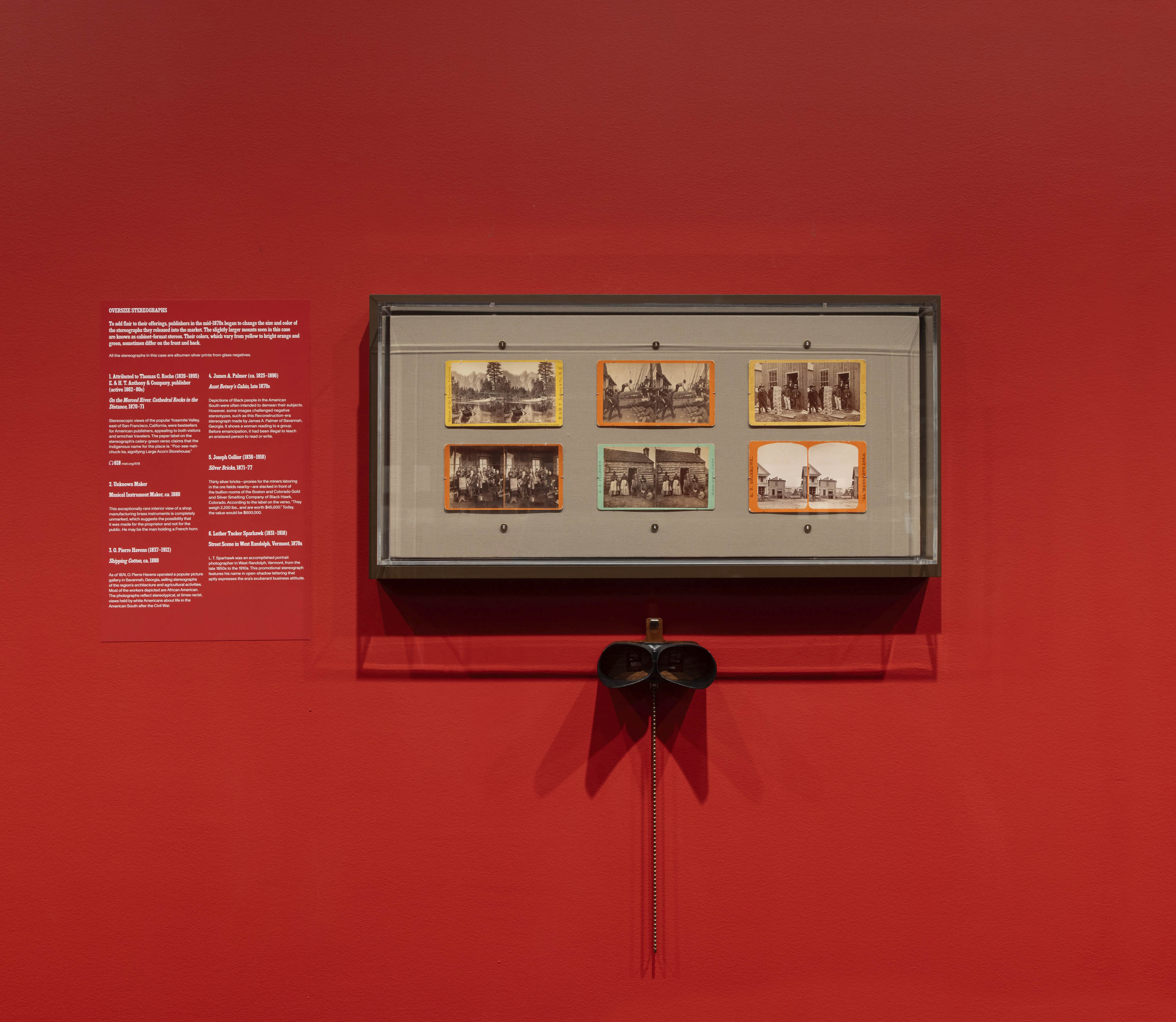 Introduced in the late 1850s and prevalent into the twentieth century, the stereograph was not only a culturally significant invention but also a commercial boon to American photographers. When viewed through a device known as a stereoscope (or stereopticon), a pair of photographs of the same subject – made from two slightly different points of view – are perceived in the brain as a single, seemingly three-dimensional image. The dazzling binocular effect created an immersive experience, offering inexpensive armchair travel and a window on the world to millions of Americans.