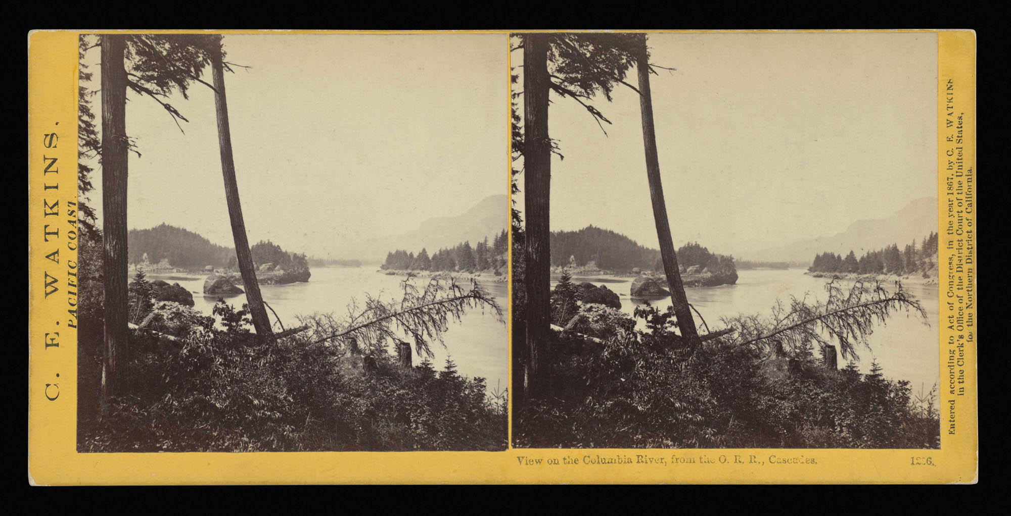 Carleton E. Watkins (American, 1829-1916) View on the Columbia River, from the O.R.R., Cascades, No. 1286 from the series “Pacific Coast” 1867 Albumen silver prints from glass negatives Mount: 3 1/4 × 6 3/4 in. (8.2 × 17.1cm) The Metropolitan Museum of Art, William L. Schaeffer Collection Promised Gift of Jennifer and Philip Maritz, in celebration of the Museum’s 150th Anniversary