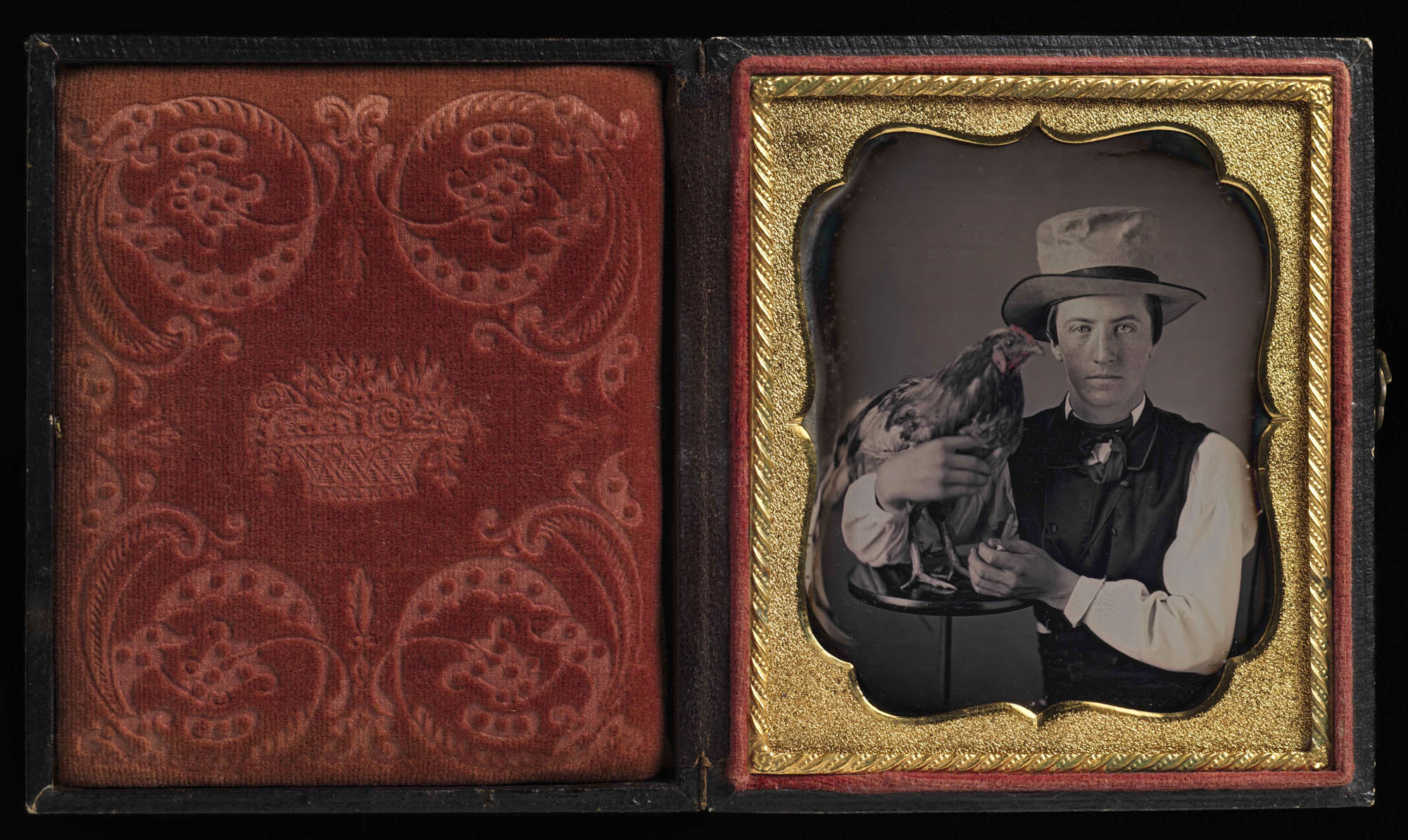 Unknown Maker (American) Young Man with Rooster 1850s Daguerreotype with applied color Case (open): 3 5/8 × 6 1/4 in. (9.2 × 15.9cm) The Metropolitan Museum of Art, William L. Schaeffer Collection Promised Gift of Jennifer and Philip Maritz, in celebration of the Museum’s 150th Anniversary