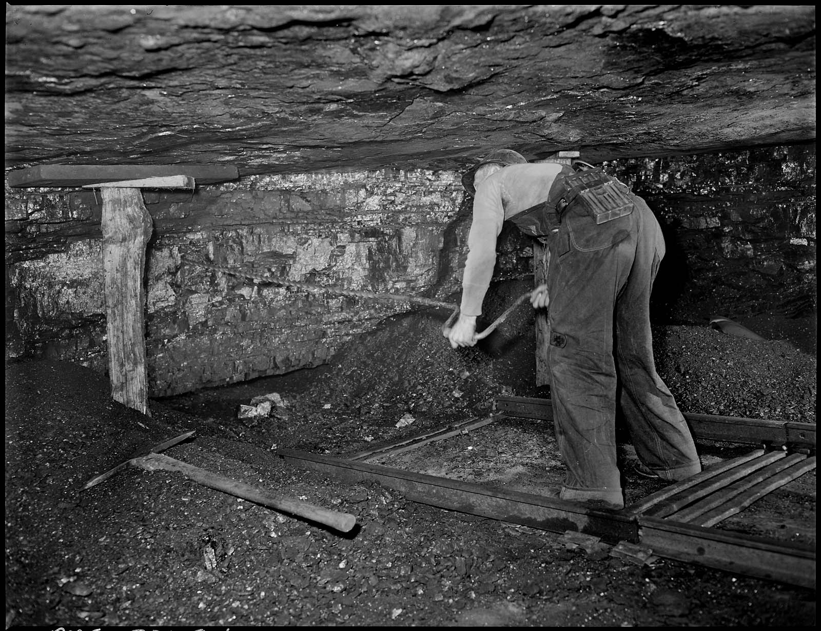 Russell Lee (American, 1903-1986) Harry Fain, coal loader. Inland Steel Company, Wheelwright #1 & 2 Mines, Wheelwright, Floyd County, Kentucky September 23, 1946 National Archives Public domain