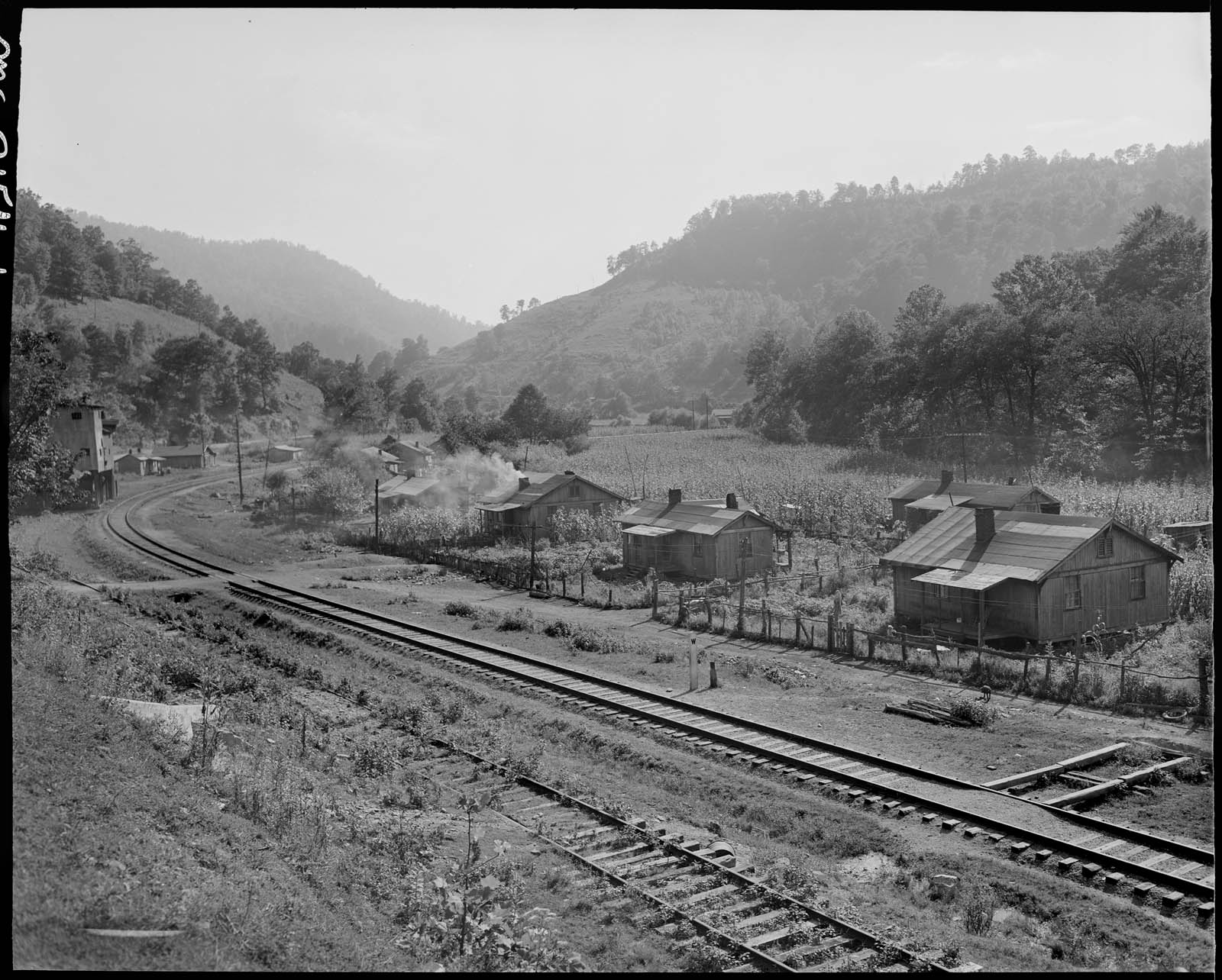 Russell Lee (American, 1903-1986) Houses along the railroad tracks. Fox Ridge Mining Company, Inc., Hanby Mine, Arjay, Bell County, Kentucky August 31, 1946 National Archives Public domain
