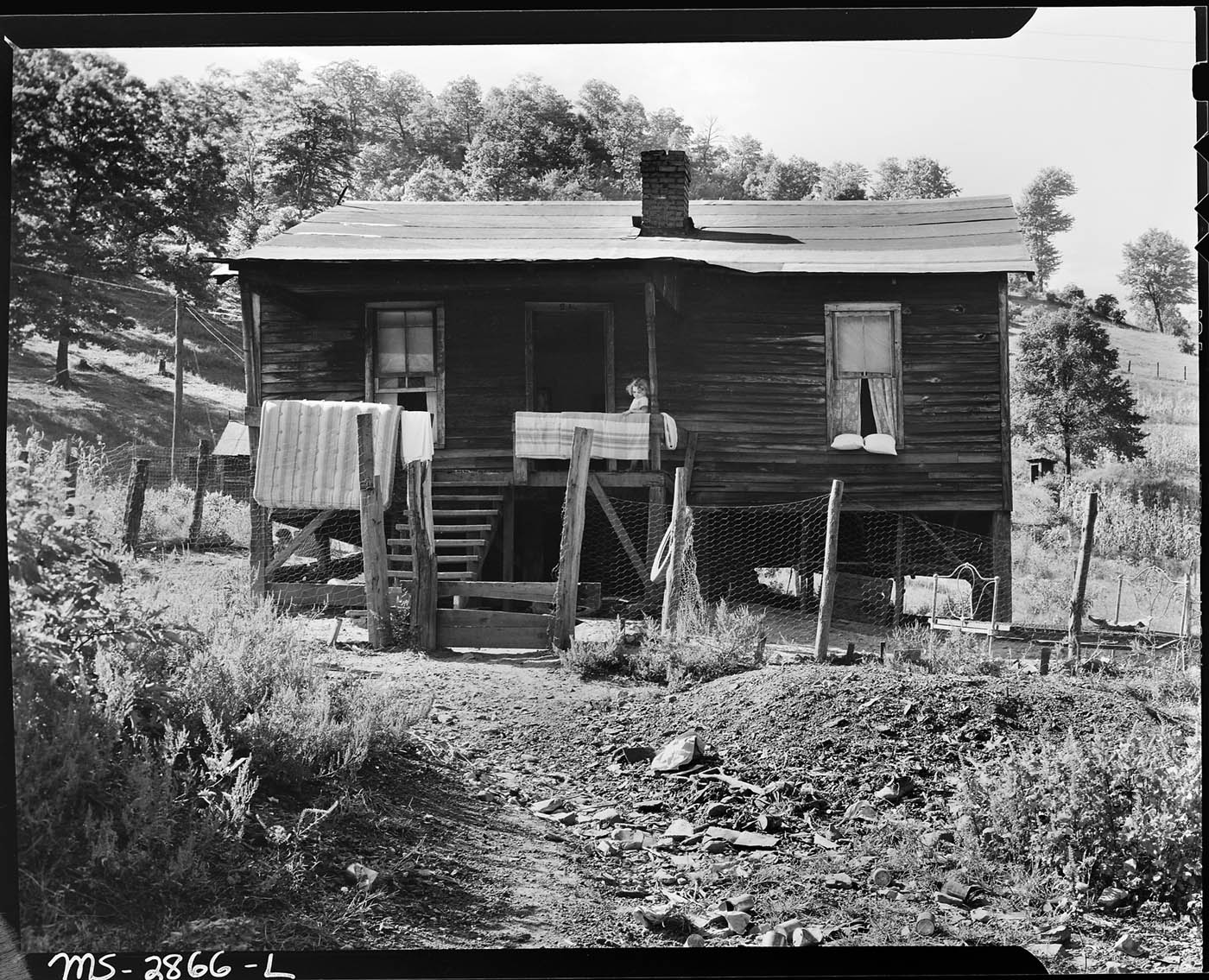 Russell Lee (American, 1903-1986) The Blaine Sergent family’s house. P V & K Coal Company, Clover Gap Mine, Lejunior, Harlan County, Kentucky September 15, 1946 National Archives Public domain