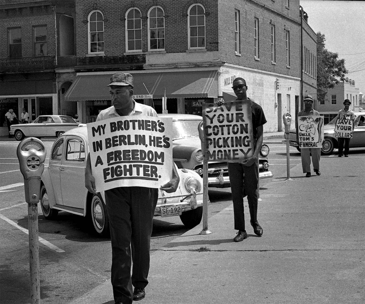 During the summer of 1960, the elders of Orangeburg took to the streets as part of ongoing demonstrations and boycotts in support of civil rights. They are standing outside a segregated supermarket where they were allowed to shop but not sit down for lunch