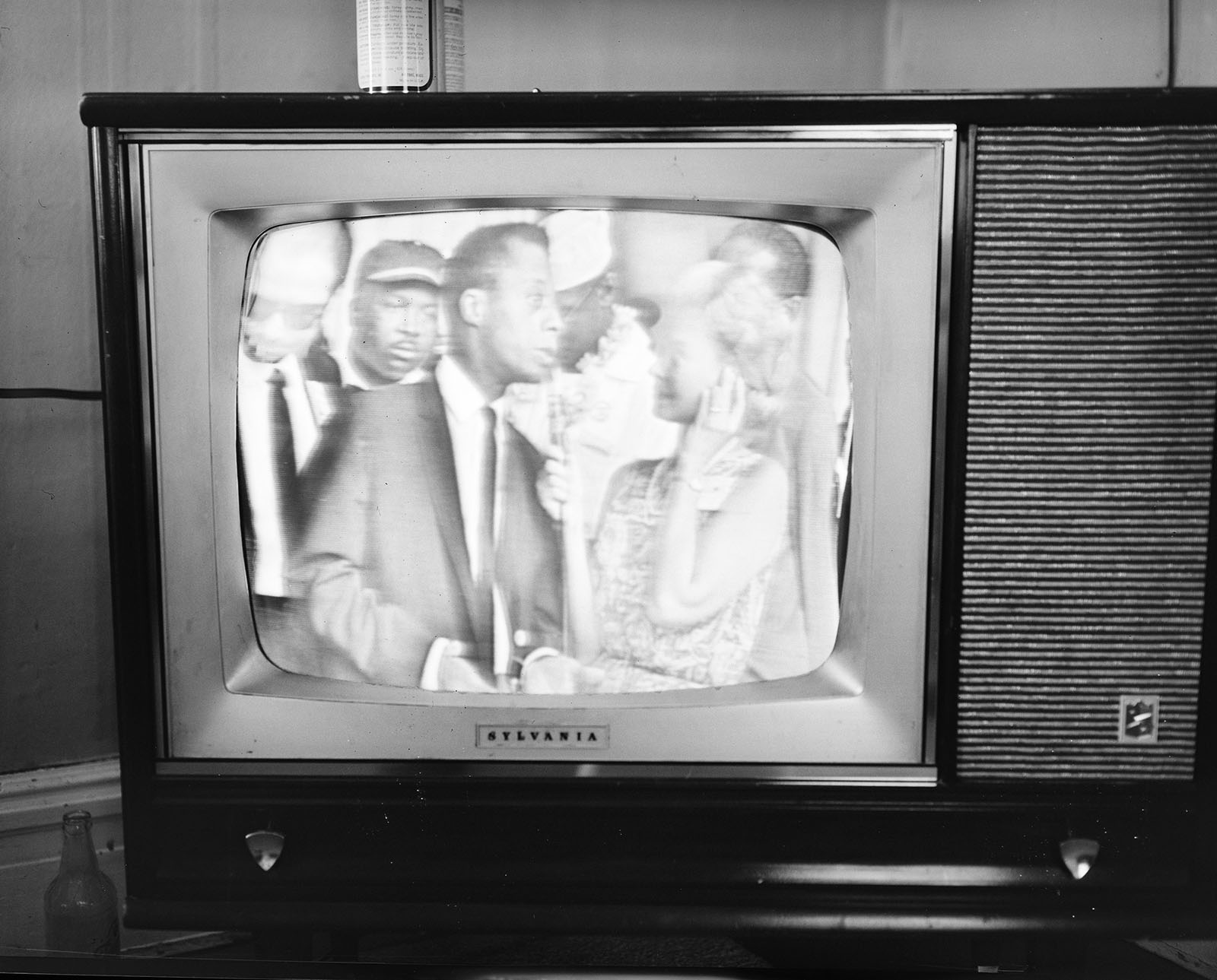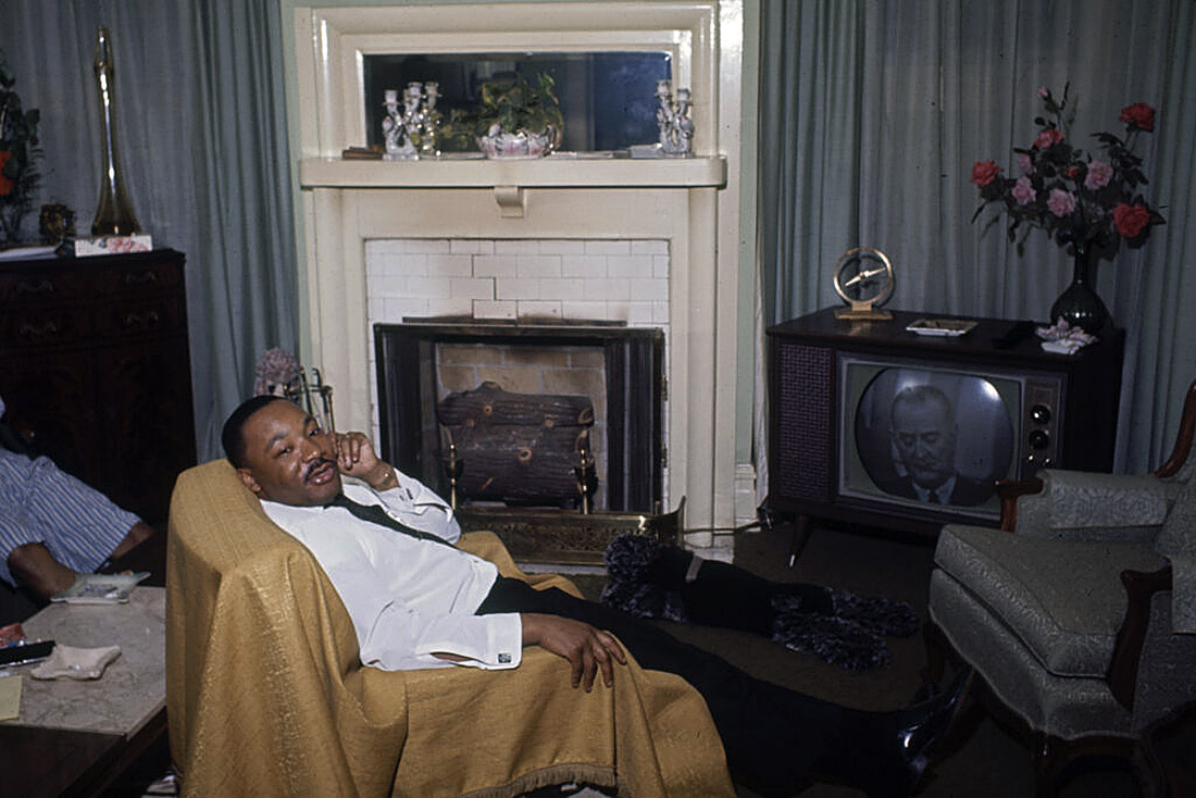 Martin Luther King and other civil rights leaders watched President Lyndon B. Johnson speak on television