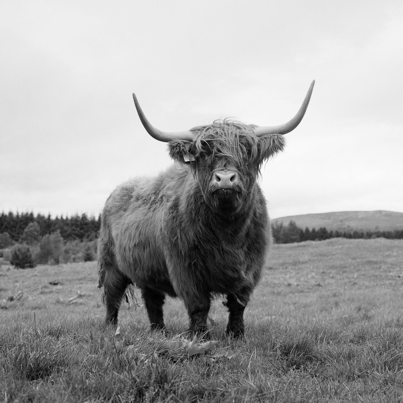 Getting a cow to stand still in a frontal pose and look towards the camera, as Ursula Böhmer managed to do with a Highlander in the Grampian Mountains, is certainly not an easy task, but one that requires patience and trust, one of the prerequisites for this project. Between 1998 and 2011, Böhmer visited 25 European countries to photograph specimens of cattle breeds in the places where their breeding history began. These breeds, many of them at risk of extinction, had to be portrayed in their own environments in order to illustrate how these environments had influenced their appearance. What emerged was a series of images of docile animals portrayed in often harsh landscapes, which at the same time document the ongoing conditioning by the environment on the forms of life also in breeding conditions.