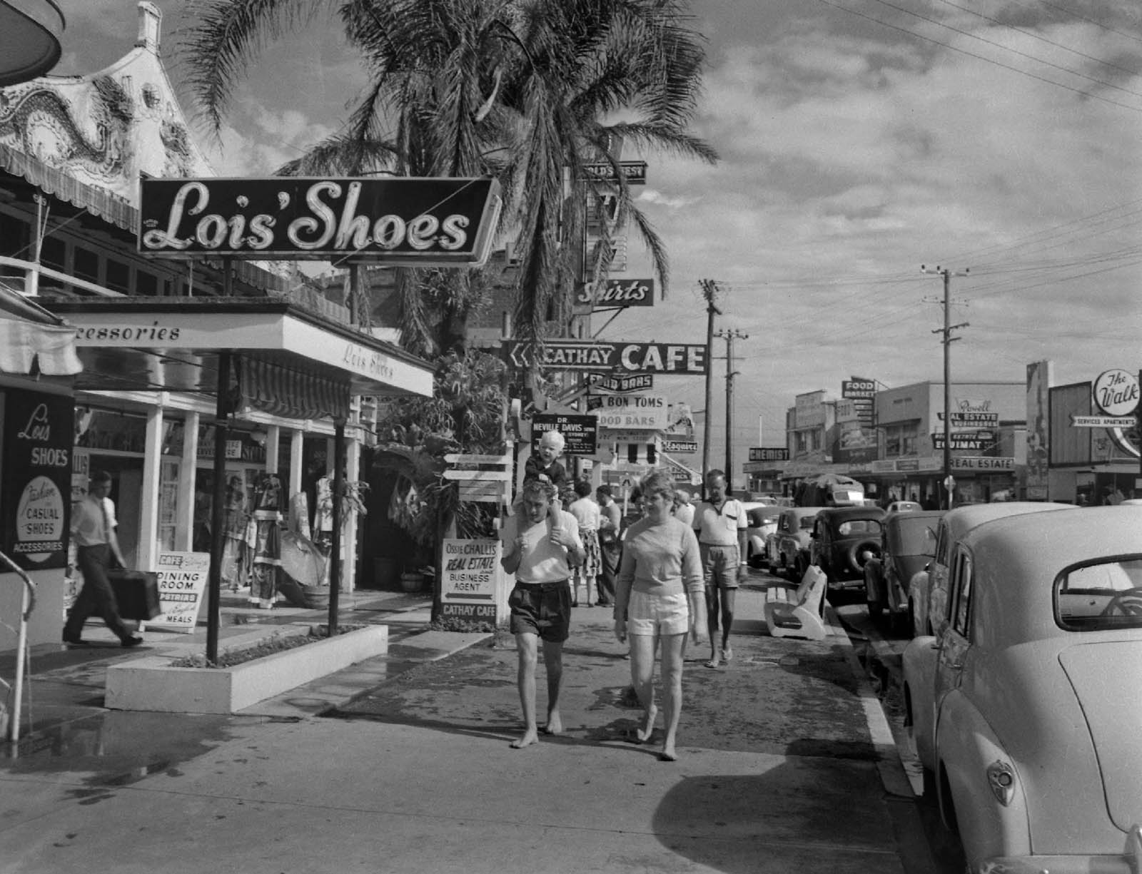 Australians have always been fairly laid back and never more so than in summer. Looking at these images from the 1950s and 1960s, it’s plain that sophistication was seldom a consideration when choosing what to wear. On holidays, most people preferred to be comfortable rather than trendy, and bare feet were common on coastal streets, as were unbuttoned shirts and even swimwear.