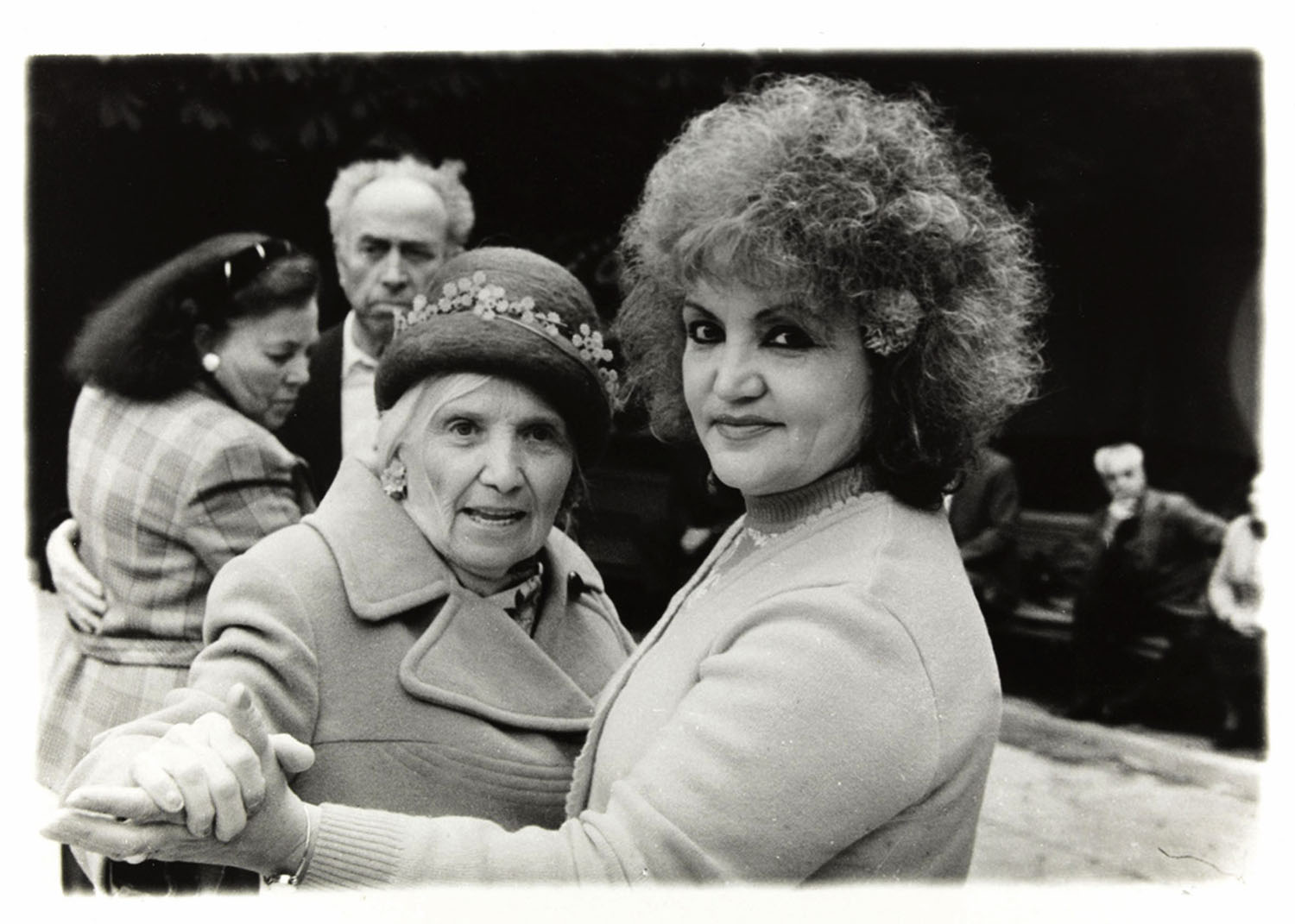 “Dance” captures light-hearted moments of open-air dancing in Kharkiv. These scenes reflecting Mikhailov’s interest in photographing very ordinary subjects and anti-heroes, “some sort of general uniqueness, a group of people that could easily be from anywhere.” In many images, women dance together as if preparing subconsciously for war, when the men would be sent away again.