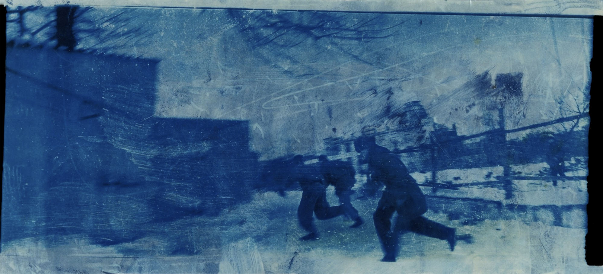 Taken shortly after the collapse of the Soviet Union, this series is toned with cobalt blue, the colour of twilight, the transition from day into night, alluding to Ukraine’s transition to independence after the collapse of the Soviet Union. For the artist, the colour blue is also linked to the artist’s traumatic memories from World War II, when at age three he was awakened by the wailing of air-raid sirens in the middle of the night: “Blue for me is the colour of the blockade, hunger and the war… I can still remember the bombings, the howling sirens and the searchlights in the wonderful, dark-blue sky…”
