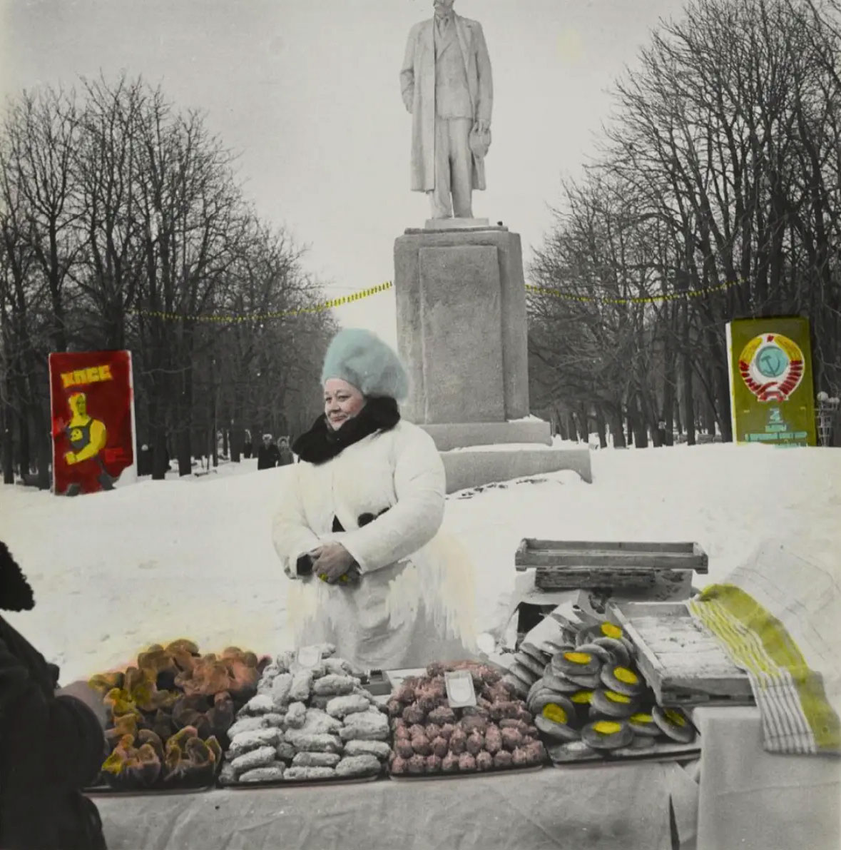 In a continuation of “By the Ground”, “At Dusk” and “Case History”, the artist photographs Kharkiv nearly two decades after the fall of the USSR, in an independent Ukraine that has adopted the Western capitalist model. Colourful advertisements and billboards, McDonald’s, an ocean of cheap plastic objects and tote bags, anonymous figures waiting at tram stops, and the cries of street vendors who once sold only tea or coffee, but now propose cappuccino as well – they capture a moment of transition, in between east and west, past and present, and a new era of “doing business” in which “anything can be bought and sold, even children,” says Mikhailov.
