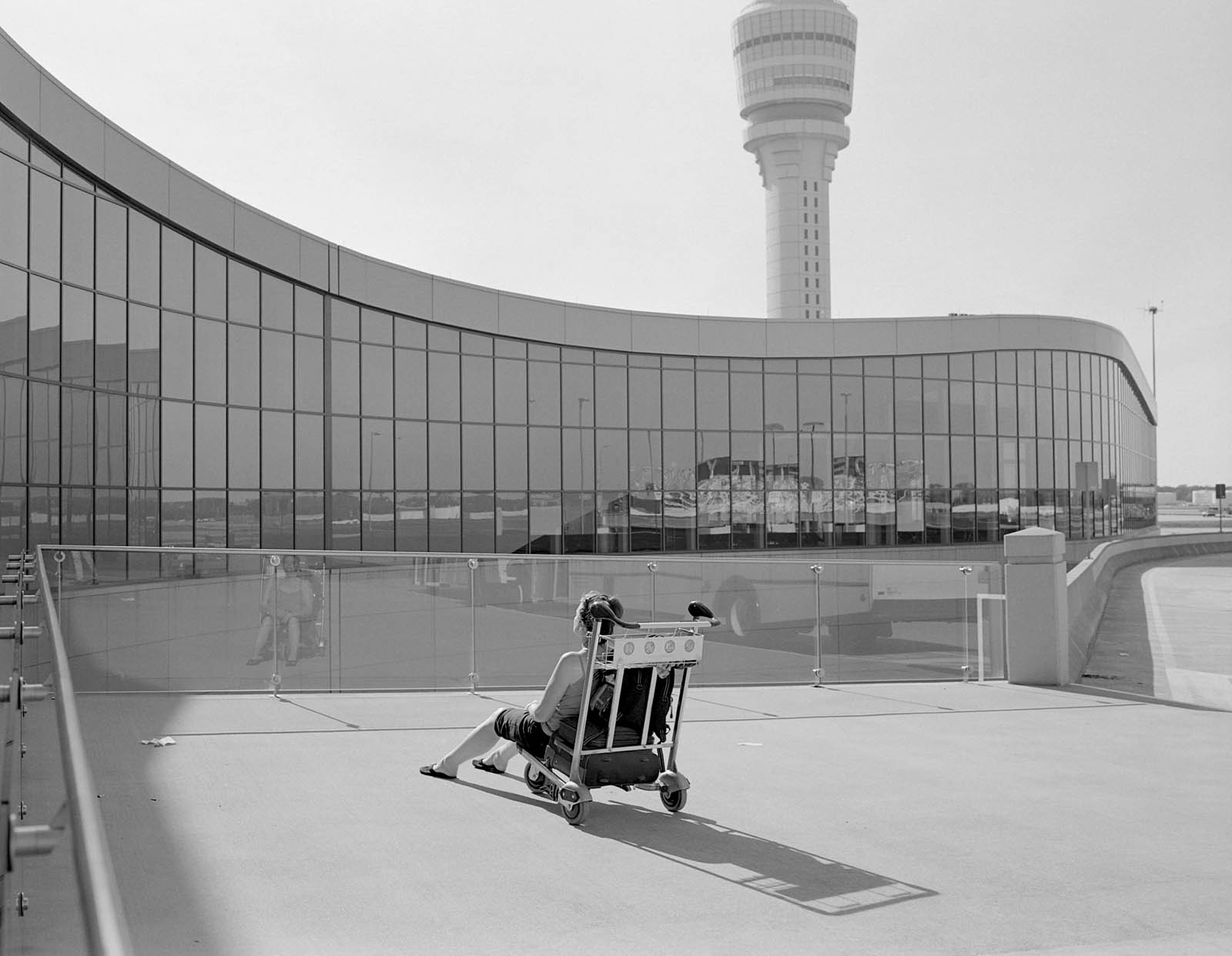 Brought up in a military family, John Humble spent his childhood moving around the country from one military base to another. Humble was drafted during the Vietnam War, then became a photojournalist for the Washington Post before pursuing a graduate degree at the San Francisco Art Institute. His itinerant nature continued when he traveled the world in the early 1970s, going from Europe to the Middle East, then to Africa and Asia in his Volkswagen van. However, since the summer of 1974 Humble has lived in one place: Los Angeles. His traveling instinct did not diminish despite his fixed geographical location; rather, it intensified as he traversed the length and breadth of the city (from the San Fernando Valley and East Los Angeles to Venice and the shores of Long Beach), creating images that explore the postmodern qualities of America’s second largest city. Humble’s desire to capture “the incongruities and ironies of the Los Angeles landscape” results in a compelling body of work where power lines cut across blue skies, freeways divide neighbourhoods and a river bisects the city.