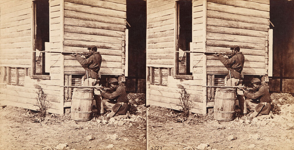 Organised in Nashville in 1864 and dispatched until 1866, Battery A of the 2nd regiment of the US Colored Light Artillery accompanied the infantry and cavalry troops into battle with horse-drawn cannons. More than twenty-five thousand Black artillerymen, many of whom were freedmen from Confederate states, served in the Union Army. Artillerymen, including the cannoneers shown here, were required to handle hundreds of pounds of supplies, such as the gun, its limber, a travelling forge, and caissons to store the ammunition. Though many batteries were relegated to everyday garrison duty, Battery A fought in the Battle of Nashville in December 1864, where these photographs chronicling the loading and firing of the gun may have been taken.
