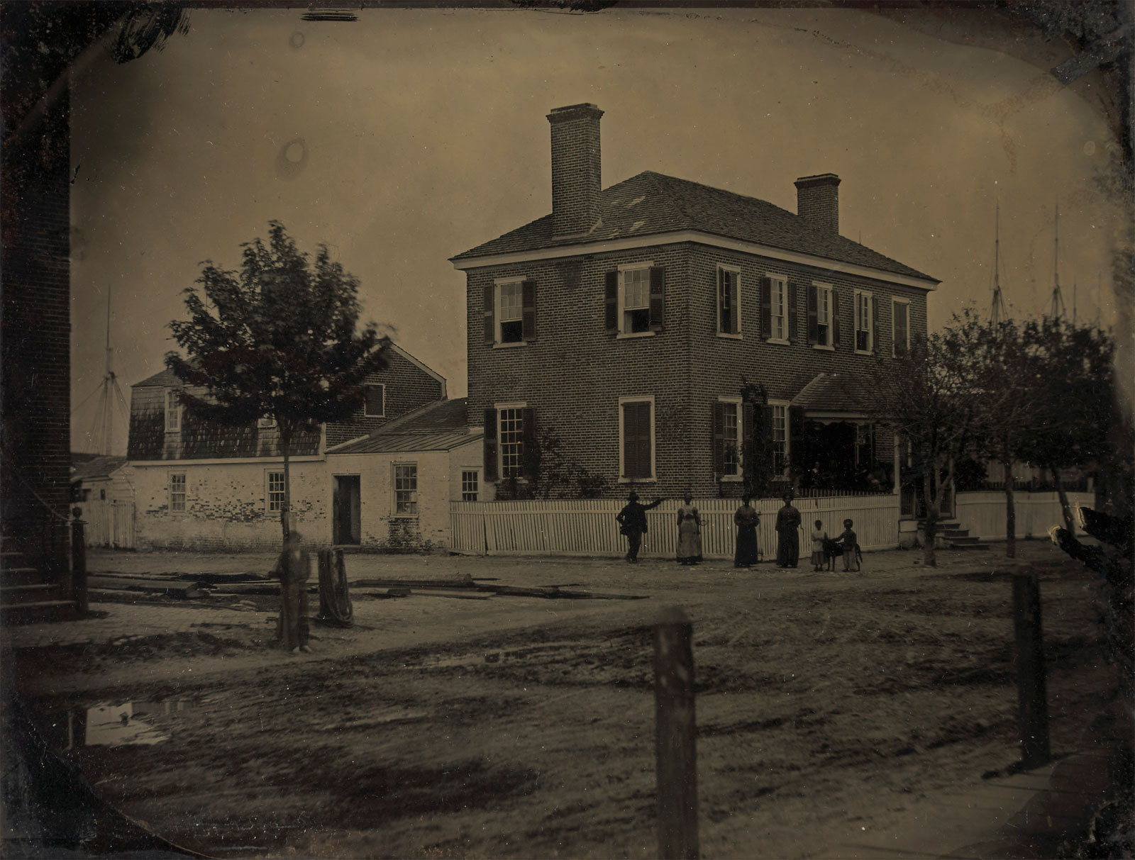 Unidentified photographer Georgian house, with posed African-American family, Norfolk Harbor, Virginia Late 1850s Whole-plate ambrotype Collection of Michael Mattis and Judith Hochberg Photo: Steven Paneccasio