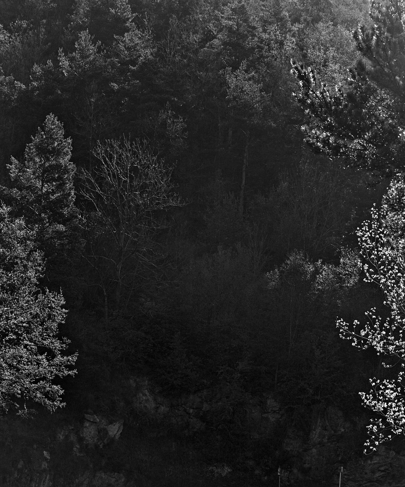 For the project Sequester, van der Molen walked alone in the Canary Islands, seeking to ‘gain access to the stoic nature of the landscape’, as she describes it. She made long exposure black-and-white pictures of the dramatic volcanic terrain and dense forests at dawn and dusk. The exposures could be as long as thirty minutes and result in photographs of great intensity and ambiguity.
