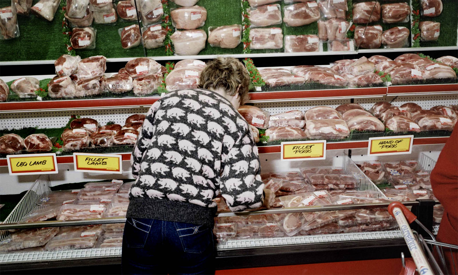 Inspired by the use of colour in advertising, Paul Reas dedicated his first series of colour photographs to the post- industrial consumer boom in the UK in the 1980s. These works, taken with a medium-format camera and a large flashgun, present everyday scenes at US-style retail parks, supermarkets and the new housing estates fast becoming a feature of British towns and villages. Reas’s images consider the impact of these ‘new cathedrals of consumption’. Reas has described how Margaret Thatcher’s belief in a free-market economy and individualism moved British society from a ‘we’ to a ‘me’ mentality. As he explains: ‘Although I was photographing people, I never really think about my photographs as being totally about people. They’re about the systems that we’re all subjected to.’