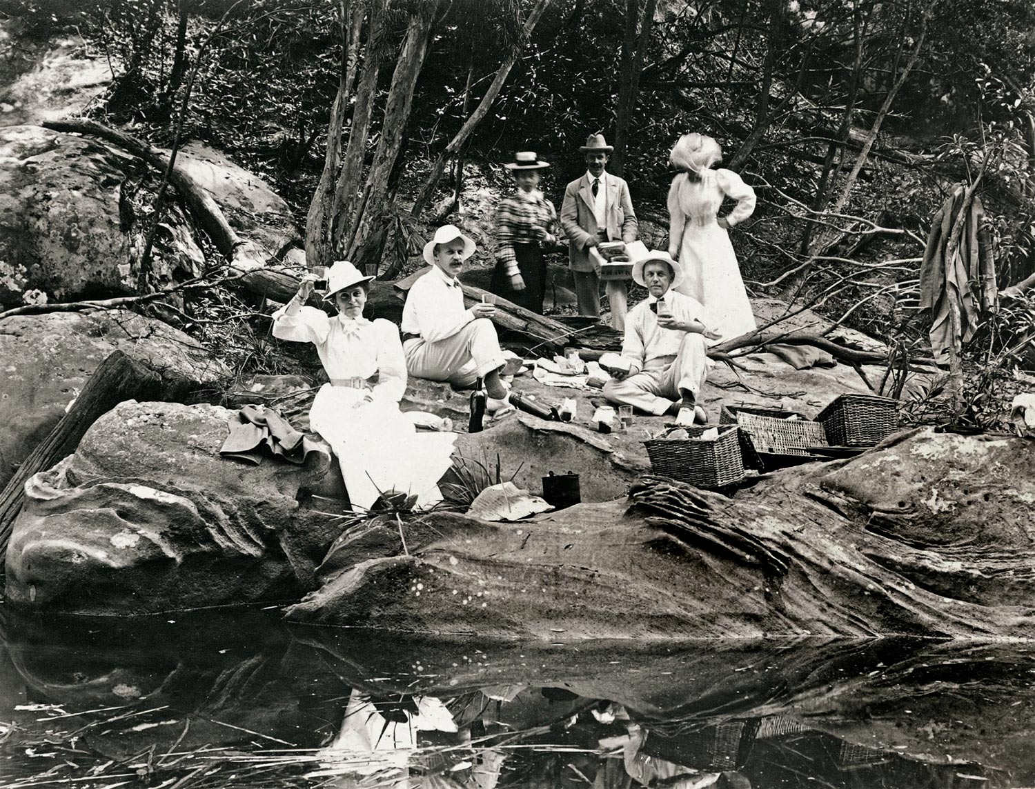 Mrs Macquarie’s Chair, Sydney (B. O. Holtermann seated at centre)