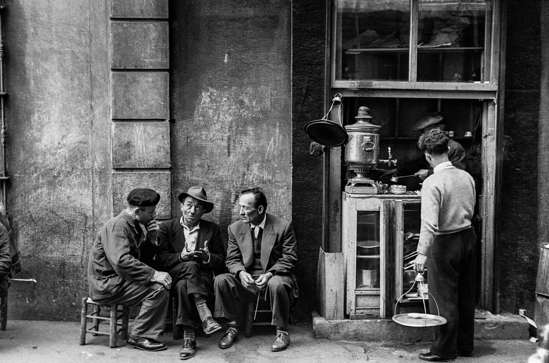 In an erudite and instructive piece of writing by Zeynep Uğur, “After Ara Güler: Capturing the Feeling of Loss in Modernizing Istanbul”, an extract of which is presented below, Uğur expertly places Güler’s photographs in the era of their composition, filling in the cultural background that surrounds their creation… depictions of the urban poor and their small routines – smoking, having a cup of tea, coffee, or an alcoholic drink – mainly men in their coffee shops and old fashioned bars, enacting traditions that have not changed for centuries, swept up in the modernisation of the city. “An emotional relation is established between people and the space they inhabit by enacting the space in the body and the body in the public sphere, hence humanising the city and spatially contextualising the people. As Jacques Lecoq announces in his pedagogy of movement in theater, only the body engaged in the work can feel, and thus reflect the evidence of the space. Güler’s urban poor portrayed in their work express the social reality with their bodies.”6