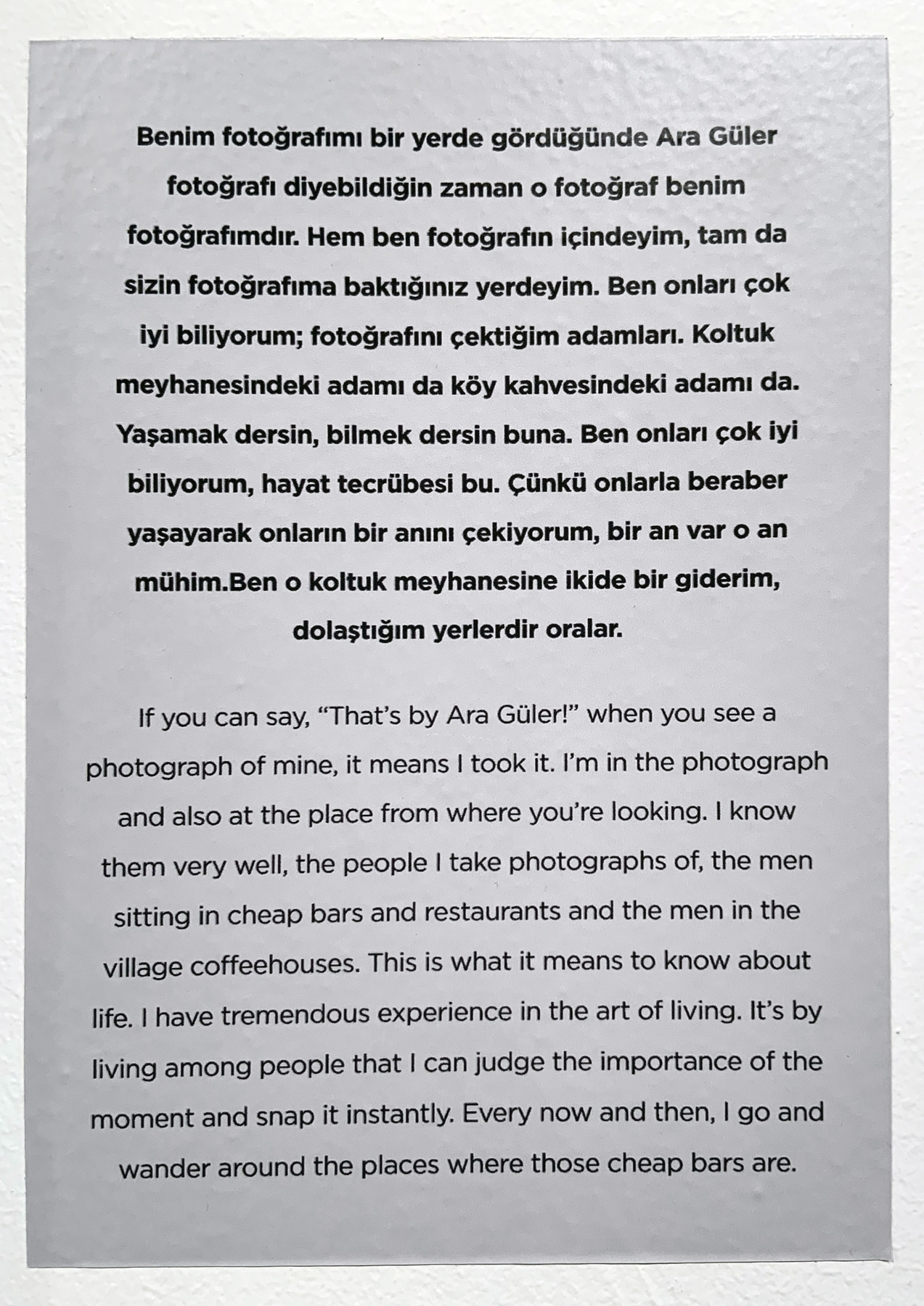 Wall text from the exhibition Ara Güler: Two Archives, One Selection: Tracing Ara Güler’s Footsteps in Istanbul at the Istanbul Museum of Modern Art