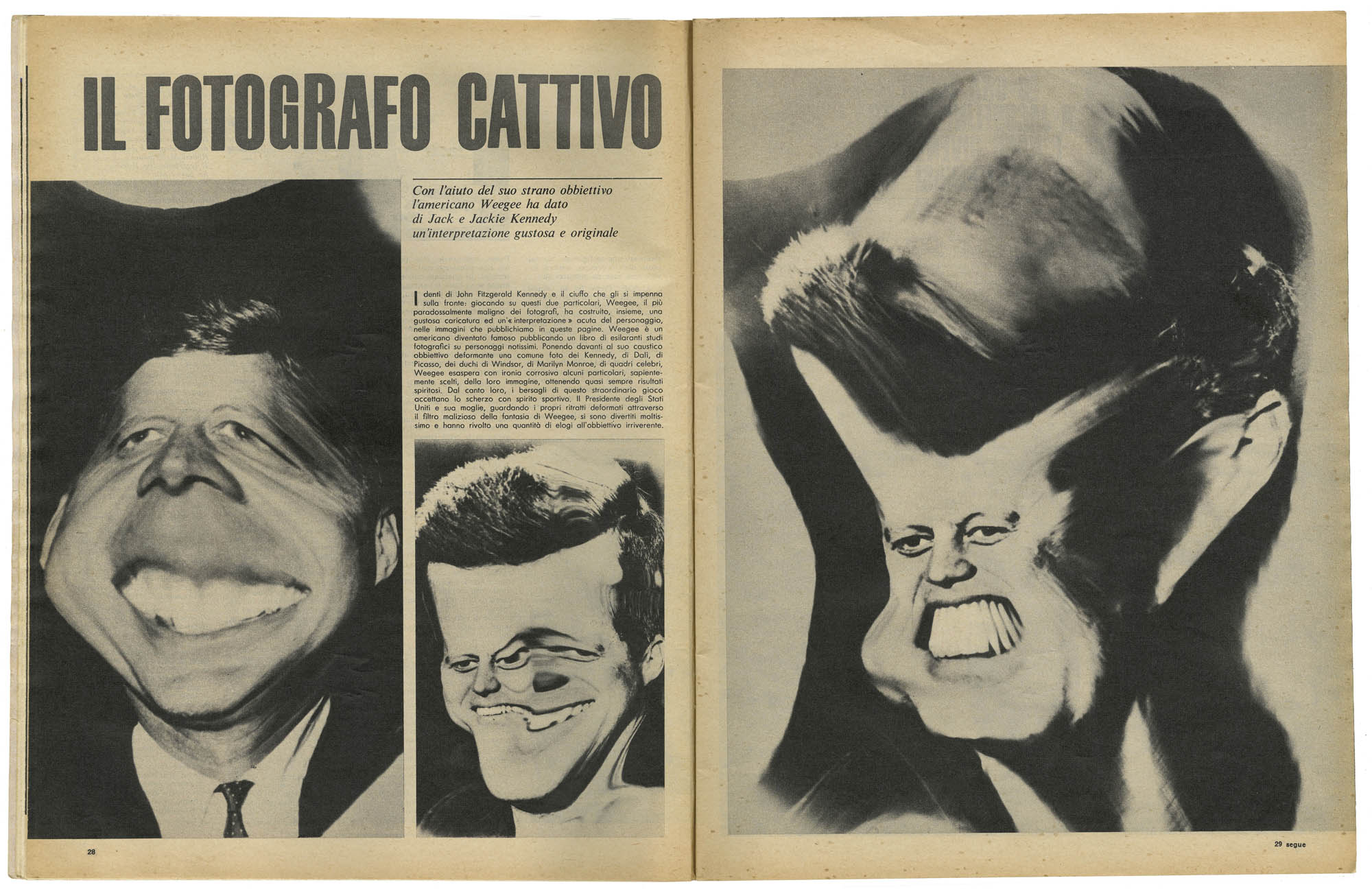 Some of Weegee’s photographs were veritable “visual punches”. This is true of the pictures he took of murders, corpses, fires and prisoners during the years spent covering crimes and accidents in New York, as well as of his later work, like the series showing circus artist Egle Zacchini being fired from a cannon at a speed of 100 metres per second, or his photo-caricatures of Marilyn Monroe, President Kennedy and other prominent personalities. His images almost always had a powerful impact on viewers, making them think not only about the scene they were contemplating but also about how they were looking at it.