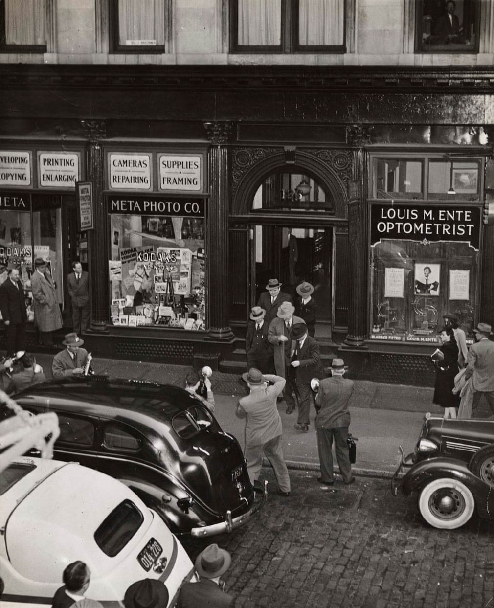 The above photo shows the murder scene of a mid-level gangster named Joseph “Little Joe” La Cava, and occurred in New York City on Mulberry Street at the Feast of San Gennaro today in 1939. We’ll go out on a limb and say the festive atmosphere took a fatal hit too. Luckily, the celebration usually went for a week, so we suppose it was salvaged. La Cava was gunned down along with Rocco “Chickee” Fagio… Also interesting, cops being cops, the flatfoot closest to La Cava looks incongruously jocular as he chats with a higher-up. If this wasn’t the most unforgettable Feast of San Gennaro in Little Italy’s history it had to be close.