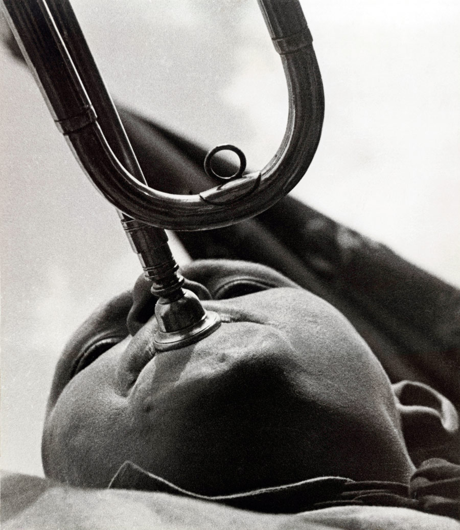 The rise of photographic avant-gardism from the 1920s to the 1940s is traced in the second gallery primarily through the work of European artists. A section on Constructivism and New Objectivity features works by Paul Citroën, Raoul Hausmann, Florence Henri, Germaine Krull, El Lissitzky, Albert Renger-Patzsch, and August Sander. A special focus on Aleksandr Rodchenko underscores his engagement with the illustrated press through collaborations with Vladimir Mayakovsky and Sergei Tretyakov on the covers and layouts of Novyi LEF, the Soviet avant-garde journal of the “Left Front of the Arts,” which popularised the idea of “factography,” or the manufacture of innovative aesthetic facts through photomechanical processes. Alongside Rodchenko, film director Dziga Vertov redefined the medium of still and motion-picture photography with the concept of kino-glaz (cine-eye), according to which the perfectible lens of the camera led to the creation of a novel perception of the world. The exhibition features the final clip of Vertov’s 1929 experimental film Chelovek s kinoapparatom (Man with a Movie Camera), in which the eye is superimposed on the camera lens to form an indivisible apparatus fit to view, process, and convey reality, all at once. This gallery also features a selection of Dada and Surrealist works, including rarely seen photographs, photocollages, and photomontages by Hans Bellmer, Claude Cahun, George Hugnet, André Kertész, Jan Lukas, and Grete Stern, alongside such avant-garde publications as Documents and Littérature.