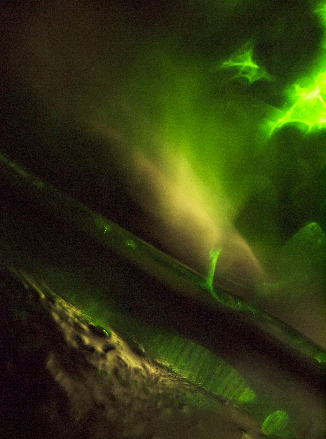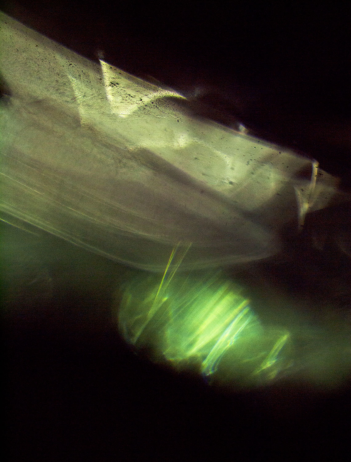 Apart from slightly adjusting the blowing out of light caused by the delicate uneveneness of light within the macro image none of these images are highly photoshopped. What is captured is pretty much true to what is seen through the lens – an extraordinary world at play within light and colour fields. I have a heard the story that the experimental filmmaker Stan Brakhage once changed a film about the interior of a house to a pure focus of patterns that he found in ashtrays lying on a table. Fantastic! See the film The Text of Light. This is an interesting tradition embracing the likes of Brakhage, Bullock , Len Lye and the Cantrills.