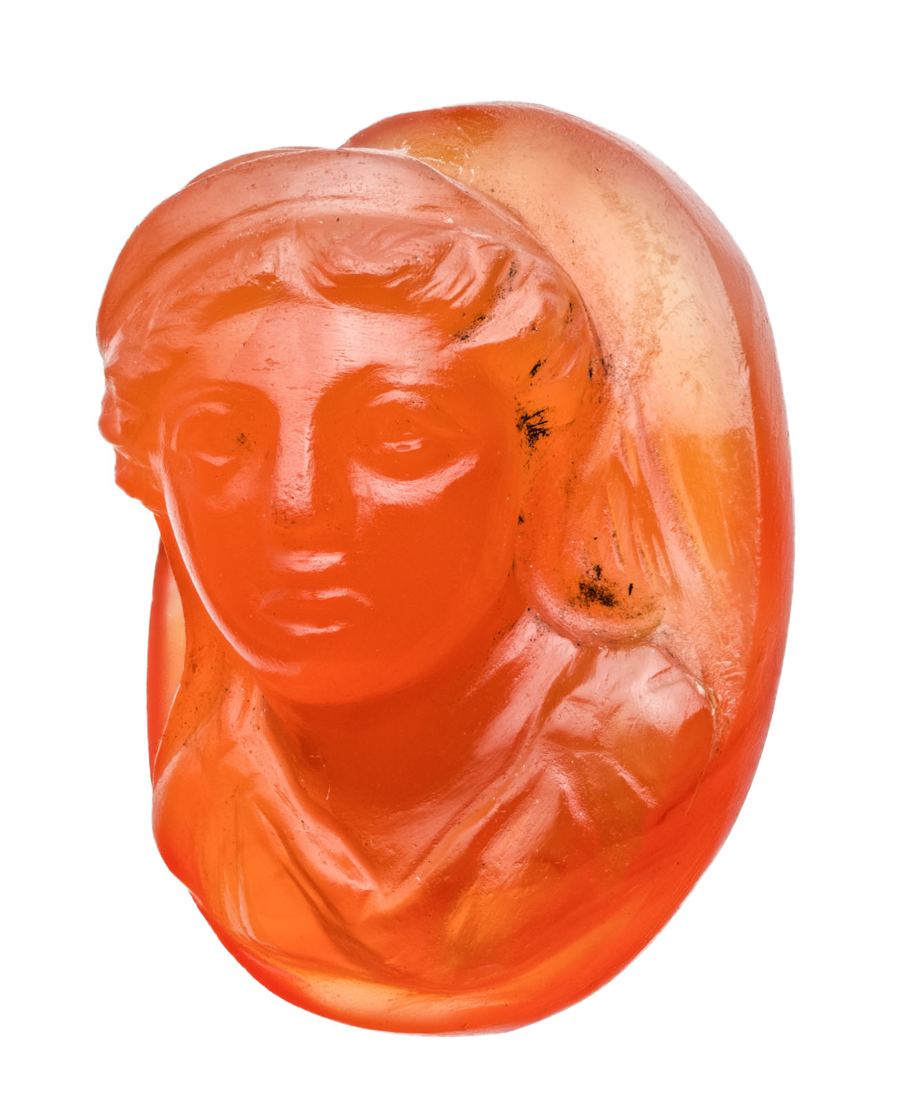 Highly individualised, this beardless male head epitomises the intense realism employed by Greek artists in the late Hellenistic period. The portrait was once part of a full-length statue, and its dynamic turn to the left would have further enhanced the pathos of the expression. Both inserted eyes are preserved, giving a vivid impression of the original appearance of portraits that have lost them. Found in 1912 at the Granite Palaistra on the Greek island of Delos, the head likely belonged to an honorific statue of a citizen displayed in or near the palaistra, a training ground for athletes.