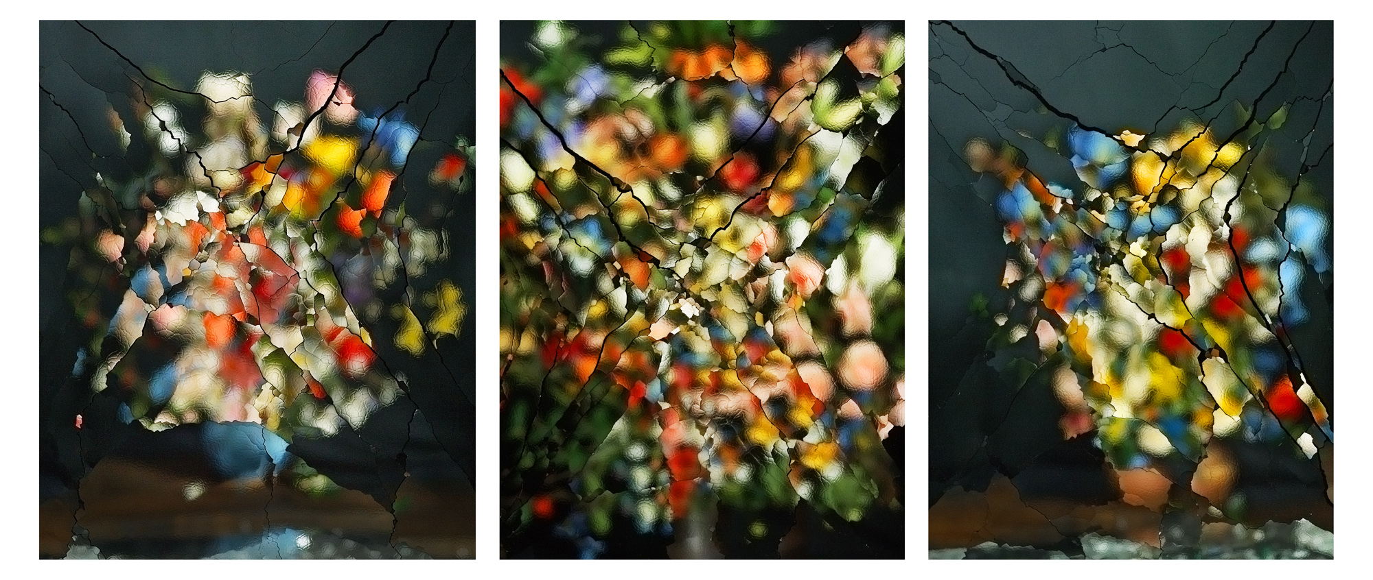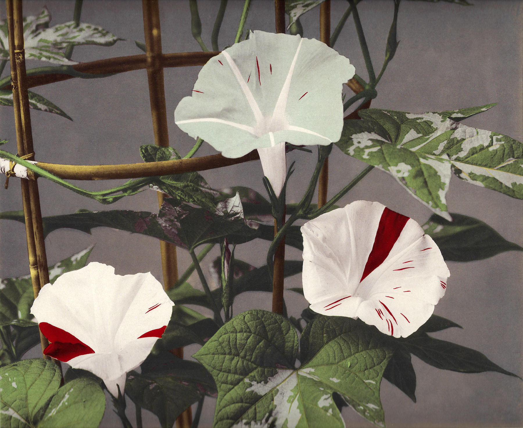 Installation view of the exhibition Photo-Secession: Painterly Masterworks of Turn-of-the-Century Photography at the Utah Museum of Fine Arts showing from top left to right, Edward Steichen Lotus, Mount Kisco 1915; Edward Steichen Calla Lily c. 1921; Edward Steichen Three pears and an apple c. 1921; Edward Steichen Blossom of White Fingers c. 1923