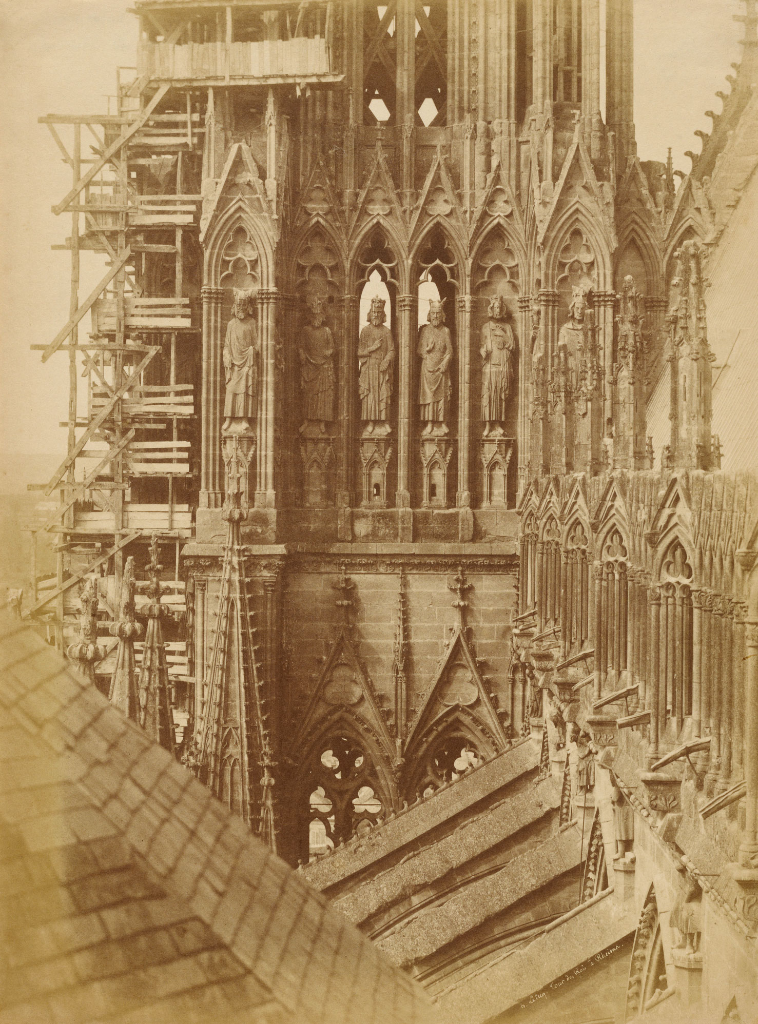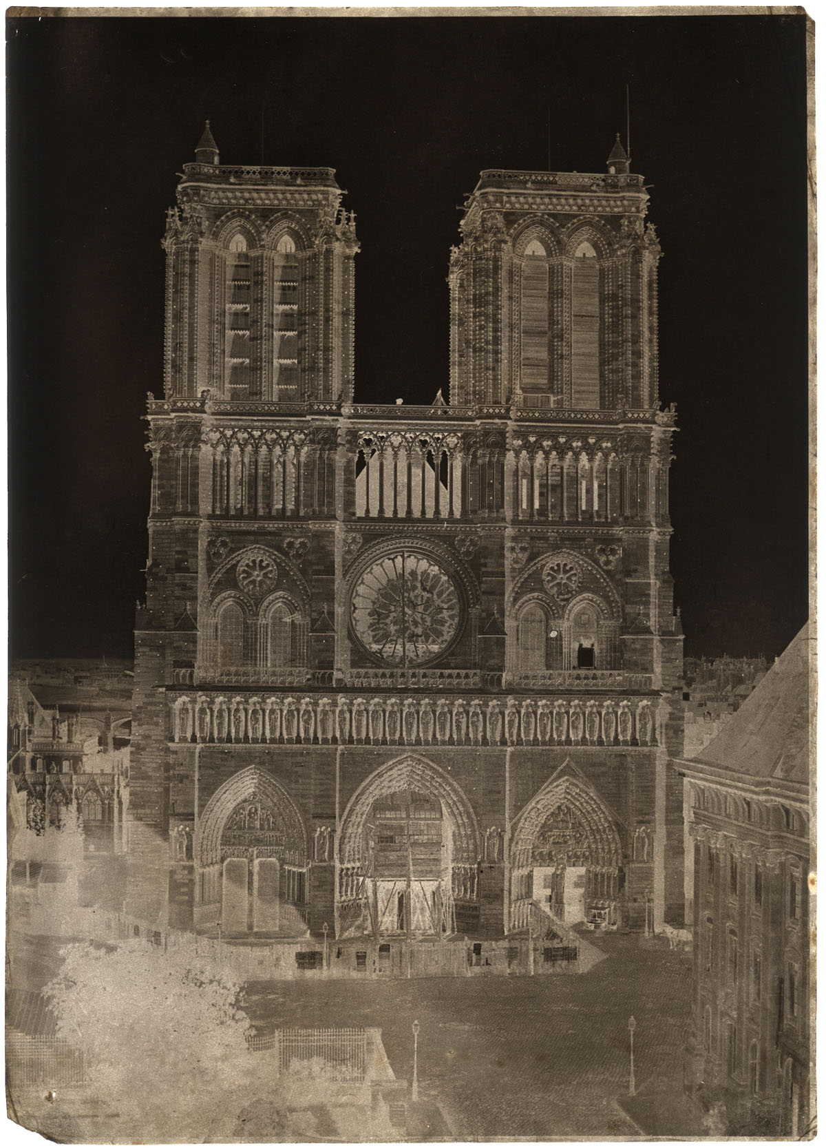 Upon returning from their respective photographic missions, Baldus, Le Secq, Le Gray, and Nègre turned their attention to documenting the transformations – through demolition and restoration – of Parisian monuments, including the Cathedral of Notre Dame, the Hotel de Ville, the Louvre Museum, the Place du Carrousel, and the Tour Saint-Jacques, images of which are also on view in the exhibition.