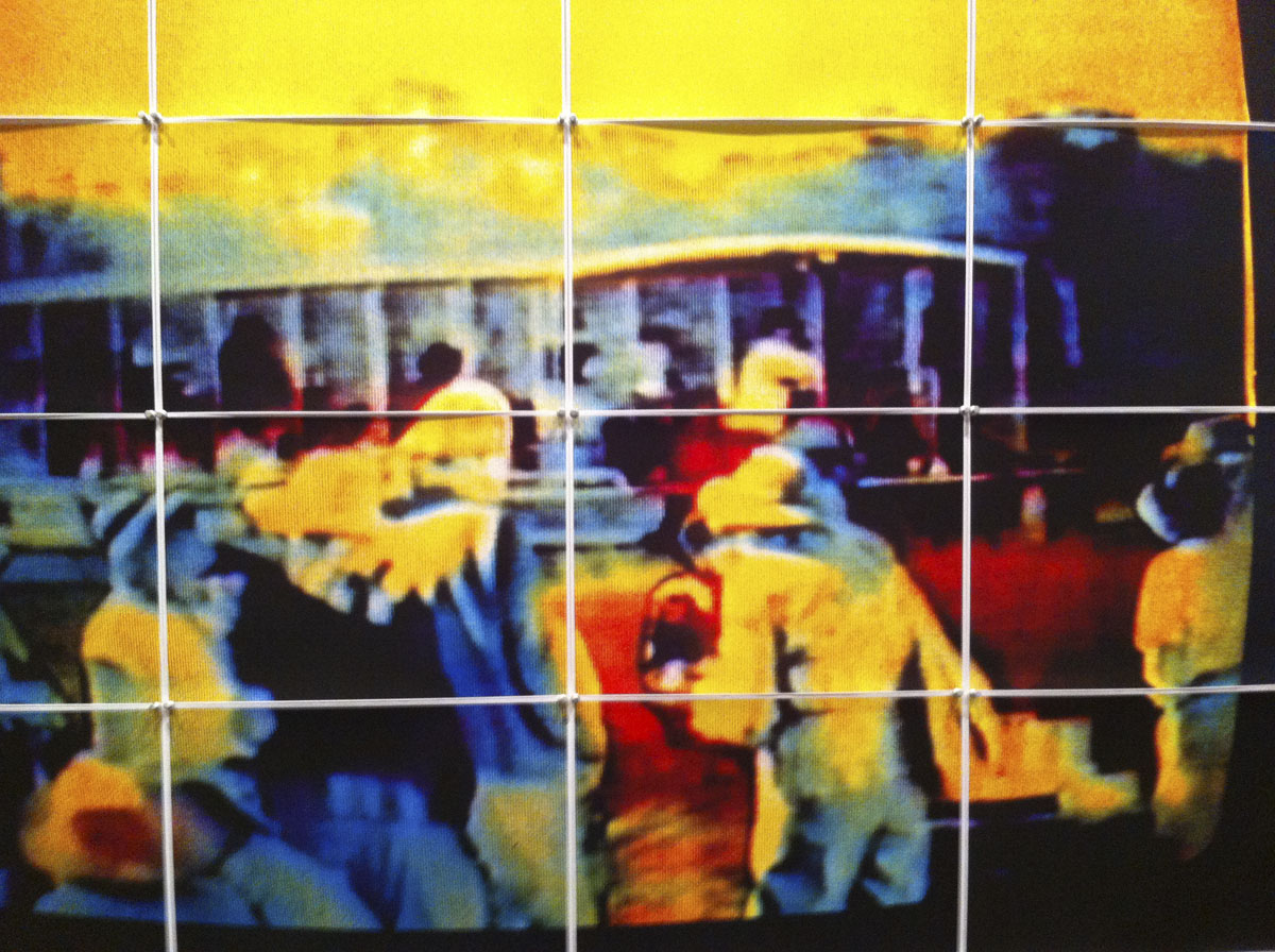 Miss World televised is typical of Virginia Coventry‘s photographic work from this period, which tended to revolve around tightly organised sequences of pictures of the same subject (swimming pools in a Queensland town; the spaces between houses) or an event (a car moving through a carwash; a receding flood).