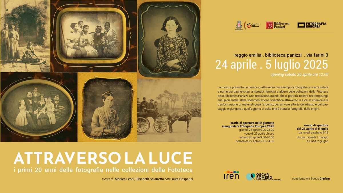 The exhibition presents a journey through rare examples of photographs on salted paper and numerous daguerreotypes, ambrotypes, ferrotypes and albums from the collections of the Photo Library of the Panizzi Library. A narrative, therefore, that will take us back in time, to the pioneering years of scientific experimentation through light, chemistry and the transformation of materials such as silver, to arrive at the art of portraiture and landscape and reach that cult object that was the photography of the origins.