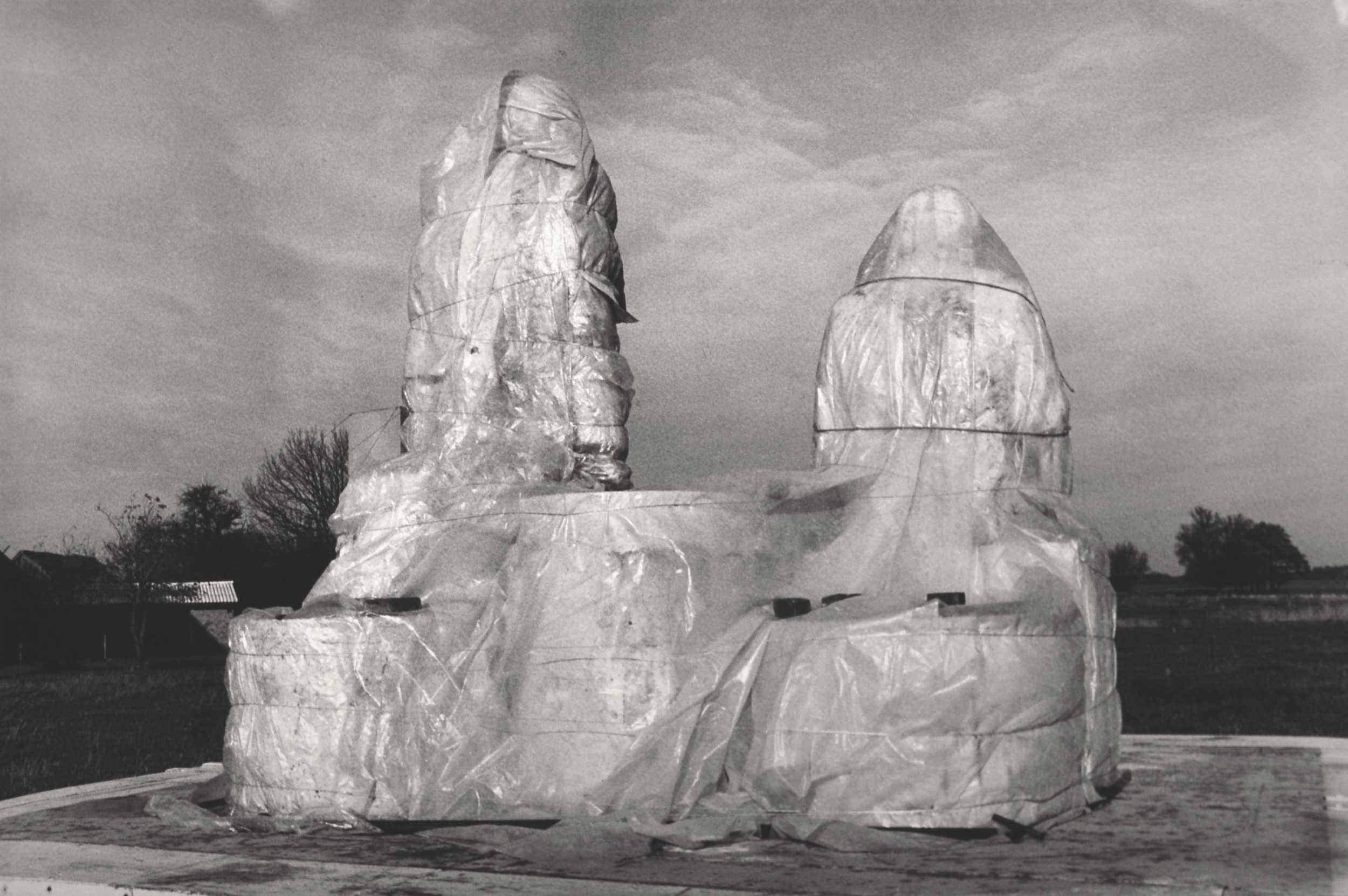 In the summer of 1947, Max Ernst, exuberant and inspired by the arrival of water piped to our house (up to then we had hauled it daily from a well 5 miles away), began playing with cement and scrap iron with assists from box tops, eggshells, car springs, milk cartons and other detritus, The result: Capricorn, a monumental sculpture of regal but benign deities that consecrated our “garden” and watched over its inhabitants. Years later, when we had gone, a sculptor friend made molds and sent them to their creator in Huismes, France where he reassembled his Capricorn for casting in bronze. The above photo is a one-shot, spur-of-the-moment caper made after taking a people-less documentary photo.