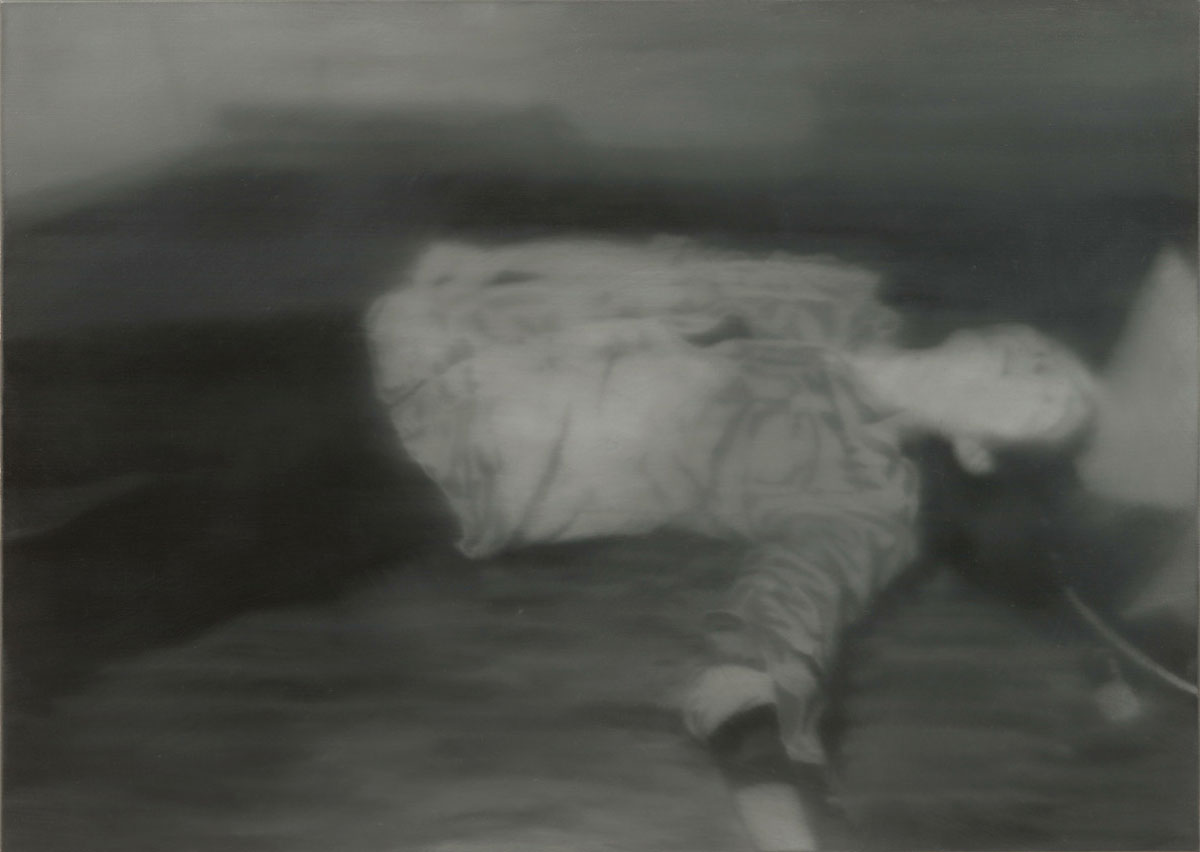 For example, Rudolf Schlichter’s smiling / grimacing Mutilated proletarian woman (1922-1923) who is missing a hand and half her forearm whilst still holding a child (which can just be seen in an installation image below), presages against her ability to be a “good” mother; Schlichter’s Der Künstler mit zwei erhängten Frauen (The Artist with Two Hanged Women) (1924) focuses on private fantasies of sexualised murder which was a recurrent theme within this period and the public interest in the rise of suicide; Otto Dix’s group of Lustmord (Sex Murder) paintings (one of which is pictured below) “attest to the anxieties of ’emasculated’, defeated men toward newly independent women. Such depraved fantasies of control, accomplished not by gunshots but gashes, were exploited and sensationalized in the rightwing press”5; and Heinrich Maria Davringhausen’s The Dreamer (1919, below) “is an especially surreal example: a grey-faced figure sits at a table, staring out; a bloody straight razor lays by his hand, while in the corner is a woman with her throat cut; above, the ceiling phases into a beach.”6