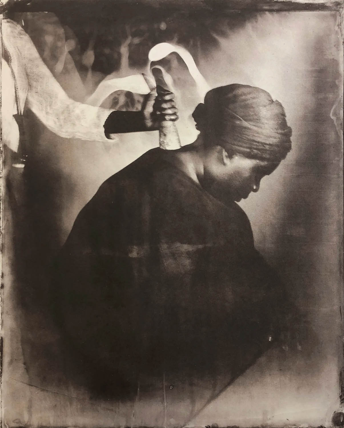 Born in San Francisco, Diné photographer Will Wilson spent his childhood in the Navajo Nation. Today he lives and works in Santa Fe. Made from his original tintypes, Wilson’s double self-portrait shows him in profile, facing off against himself: on one side wearing an elaborate silver and turquoise necklace, and on the other dressed in a cowboy hat and work gloves. The title riffs on the 1962 John Ford movie How the West Was Won, an epic Western of the type that helped turn stereotypical cowboys and Indians into potent symbols for the American public. Wilson’s dual portrait illustrates the disparate ways that he – as a Native American artist – might be portrayed and perceived by others, whereas in his case, the reality lies somewhere between the two.