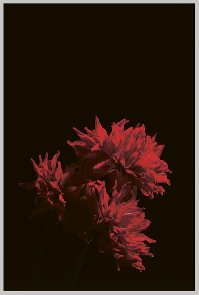 Many of the motifs photographed by Sakiko Nomura evoke the intrinsic relationship between life and death. Likewise, the staging of her compositions, the darkness of their atmospheres, and the monotony of tonalities also suggest the coldness of death, as if – despite the artist’s restraint – they were expressing hidden notions of tenderness and intimacy. An example of this can be found in her series of flowers, in which orchids, lilies, roses, chrysanthemums, and other decomposing flowers are placed in vases in the middle of a room; together their form an extension of baroque vanitas and represent allegories of the fleetingness of existence, its beauty being purely transitory.