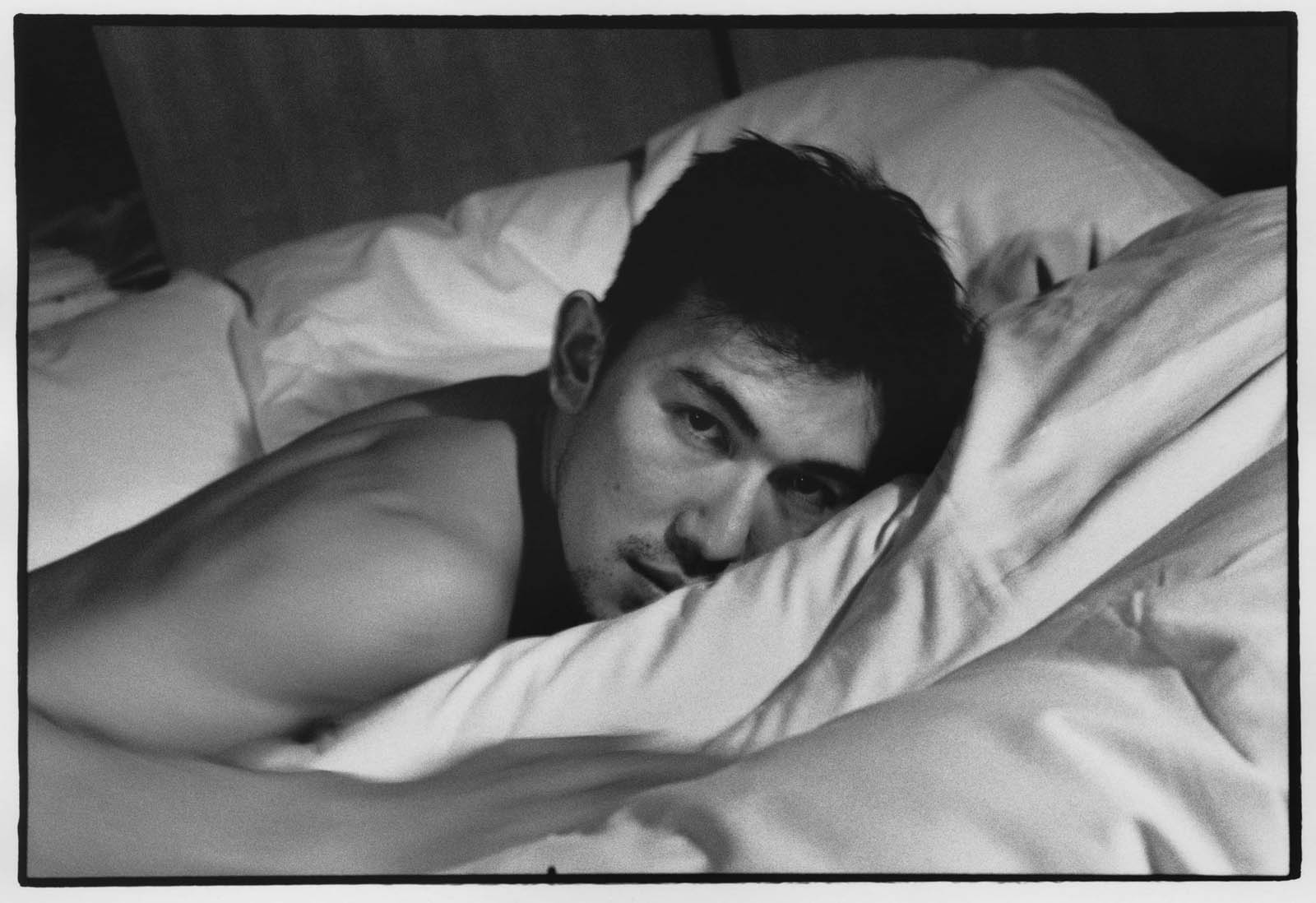 The reclining portrait is a photographic genre Hujar made his own. The pose features extensively in his 1976 monograph Portraits in Life and Death, and he continued to rely on it as a means of capturing something unique in his sitter: to face a camera lens from a reclining position is an unfamiliar and provoking experience.